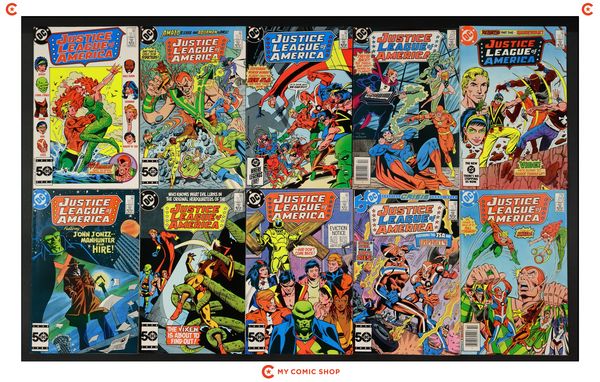 Issues 233, 237, 238, 241, 242, 243N, 244, 246, 247, 248, of Justice League of America (1960 1st Series). Most will grade in the FN to VF range.