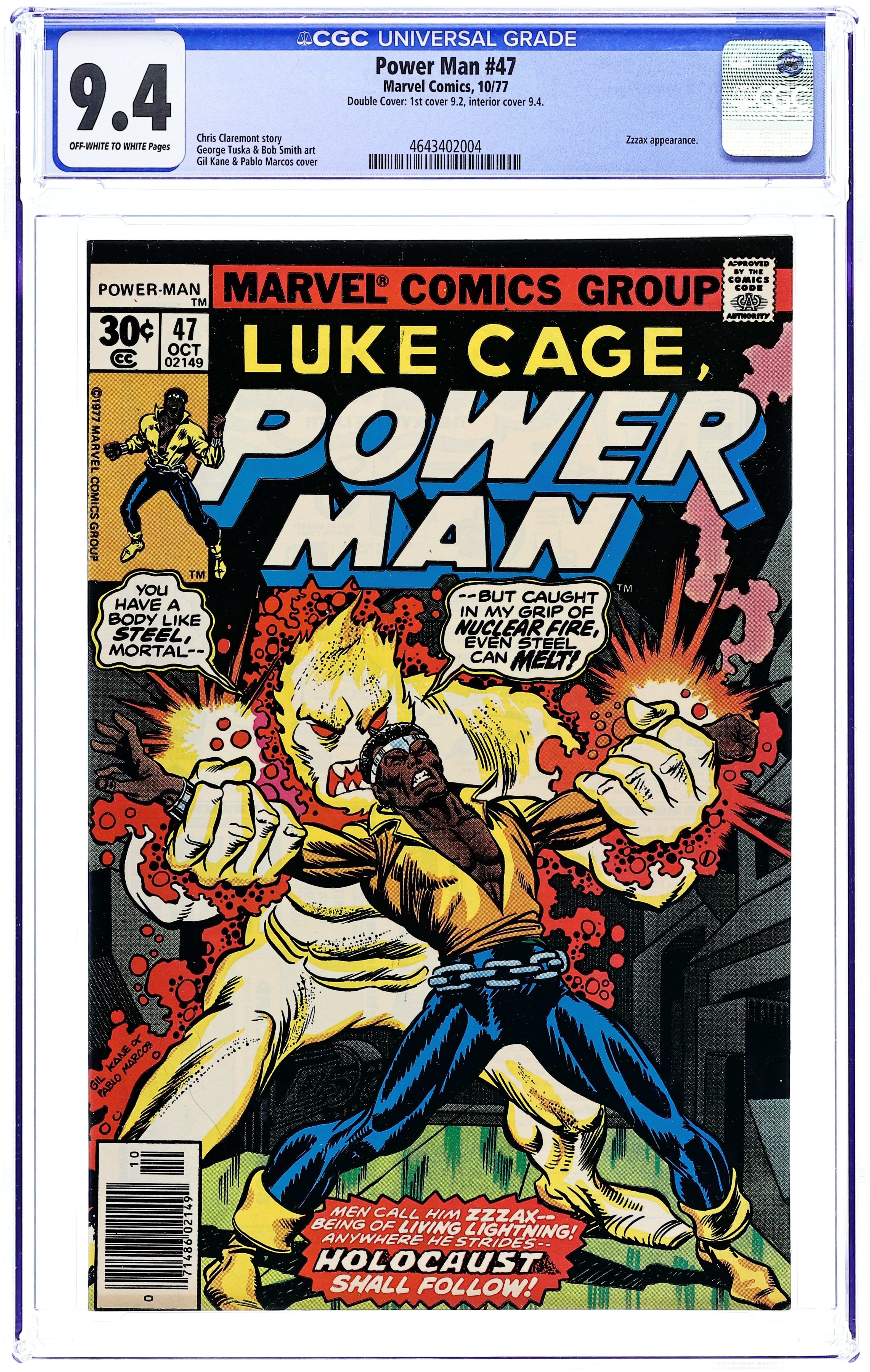 "Hot Time in the Old Town Tonight!" Part 1 of 3. Story by Chris Claremont. Art by George Tuska and Bob Smith. Cover by Gil Kane. Luke Cage comes face-to-face with the electrical menace of Zzzax. Can even Power Man stand against a foe who has fought the Incredible Hulk? Cover price $0.30.