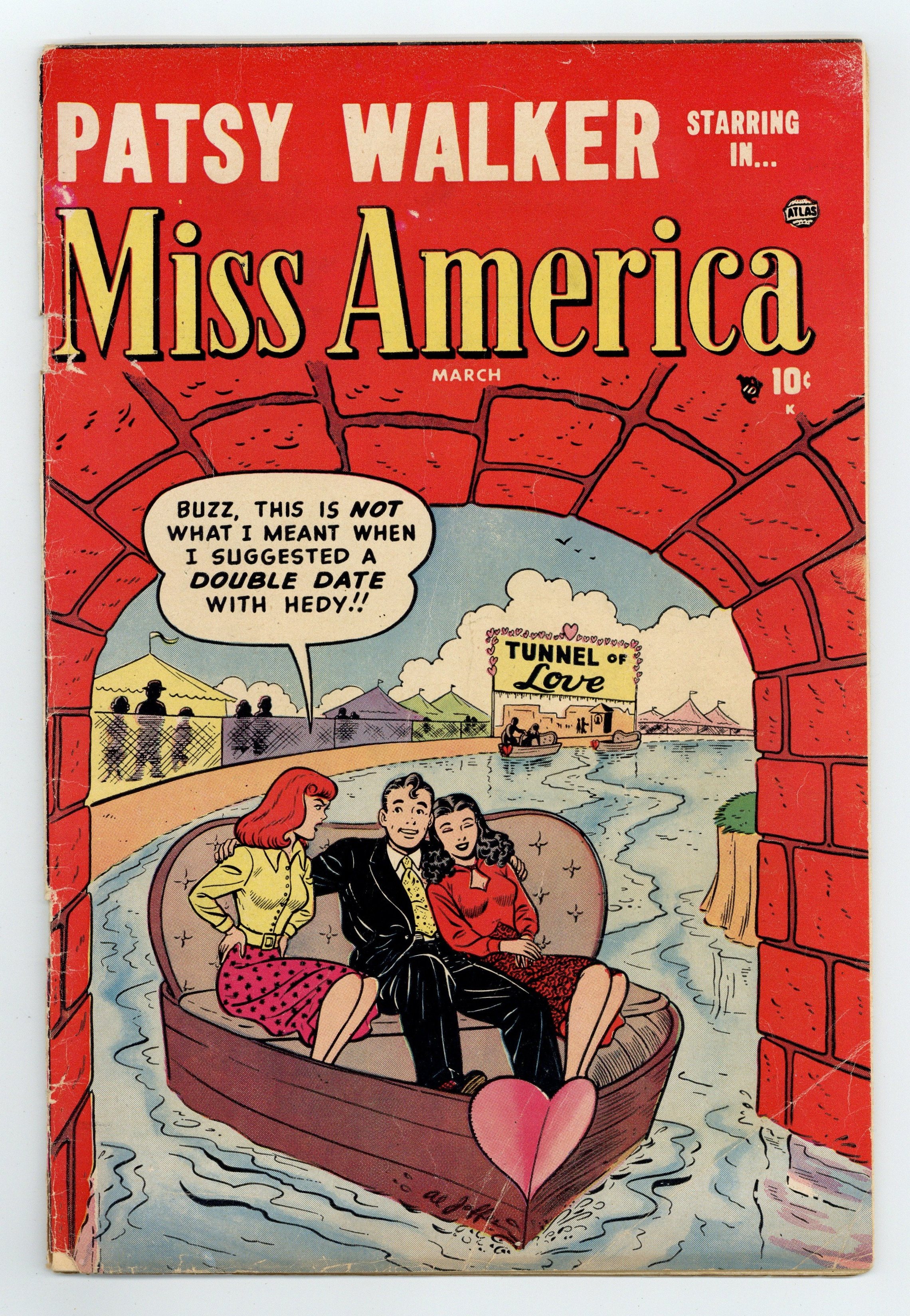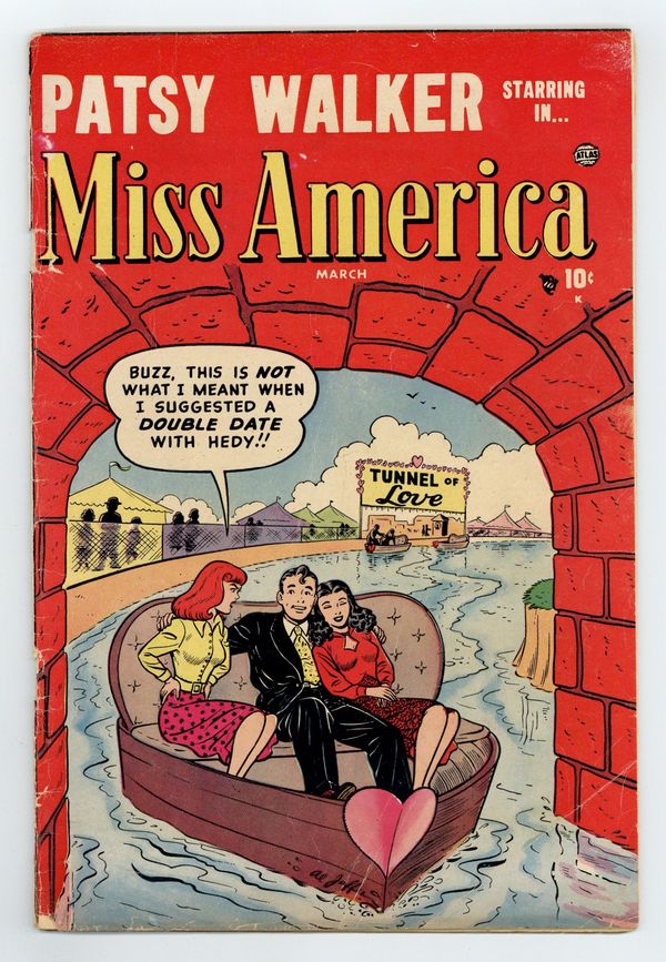 Starts Apr 27 Title is Patsy Walker Starring in... Miss America, no number on cover, issue (44), March 1952, Patsy Walker (3 stories), Hedy Wolfe. Two-page text story, "All a Mistake!" Al Jaffee cover. Cover price $0.10.