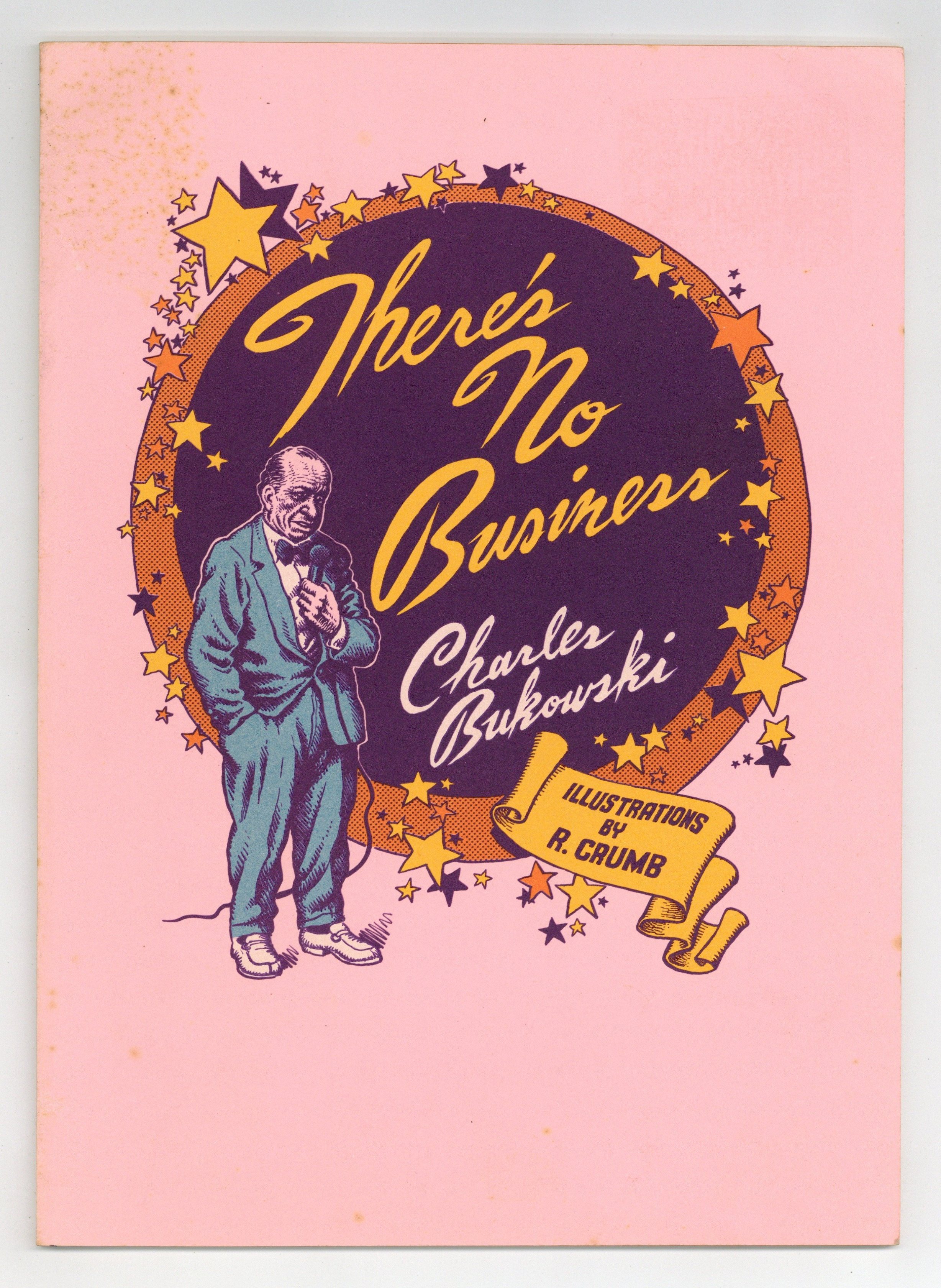 Starts Jan 26 There's No Business is written by Charles Bukowski with a cover and numerous interior illustrations by Robert Crumb. 7.5-in. x 10-.5-in., squarebound, white paper stock, color cover with B&W interior. This is the first edition of 400 trade copies published by Black Sparrow Press. NOTE: An additional 426 handbound copies were autographed by Bukowski and Crumb.