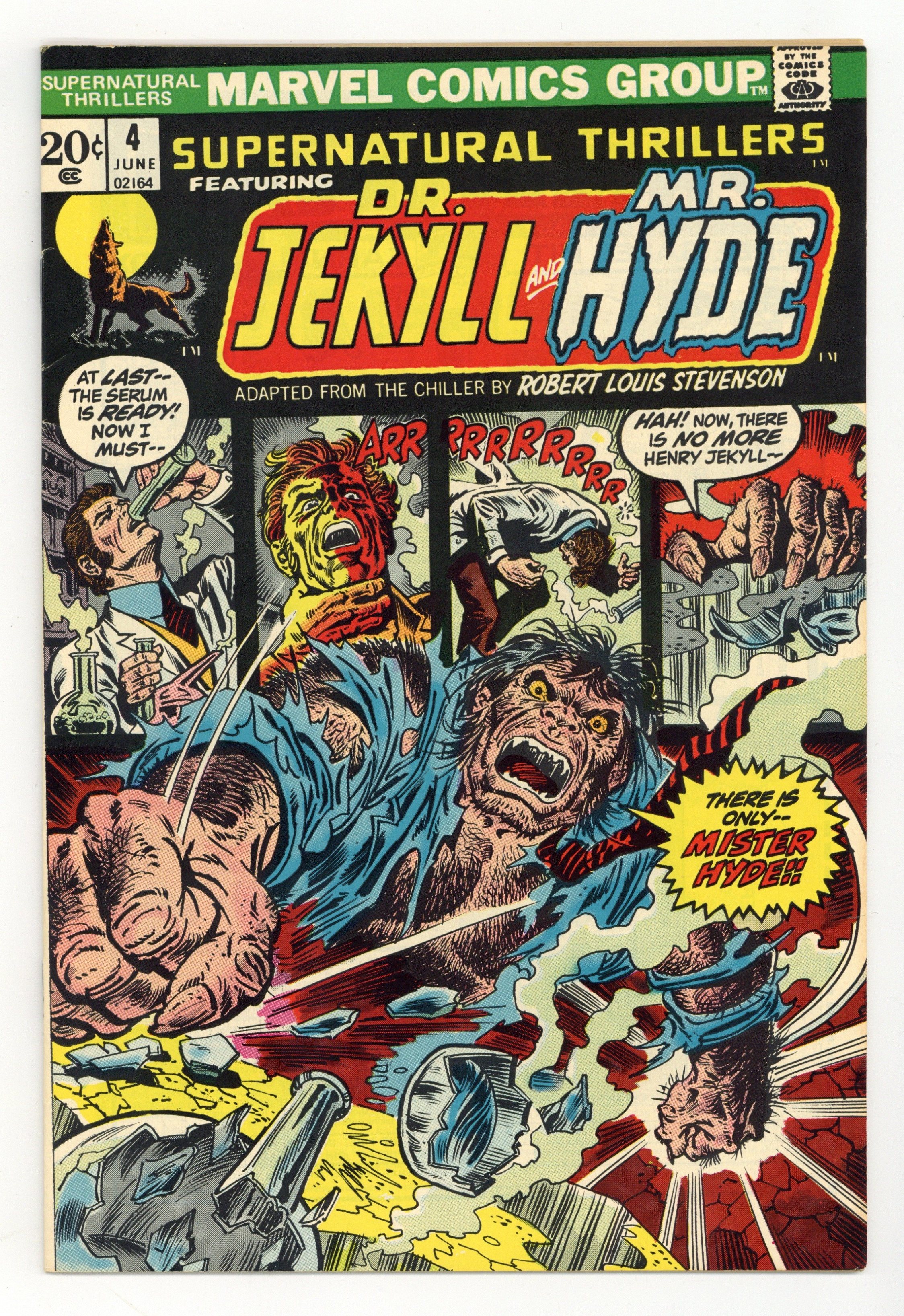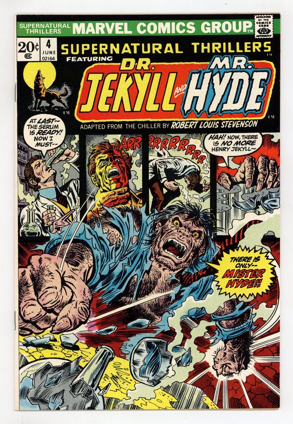 Starts Apr 20 Cover pencils by Ron Wilson, inks by Ernie Chan and John Romita (retouches). Dr. Jekyll and Mr. Hyde!, script by Robert Louis Stevenson (Original Story), and Ron Goulart (Adaptation), art by Win Mortimer; Adapted from the novel by Robert Louis Stevenson; a doctor creates a potion that brings out his dark side. 36 pgs. $0.20. Cover price $0.20.