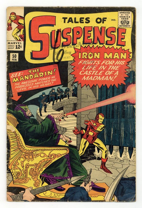 Starts Mar 23 Cover pencils by Jack Kirby, inks by Chic Stone. Iron Man's costume gets a slight re-design in "The Mandarin's Revenge!", script by Stan Lee, art by Don Heck; Tony's observer missiles have failed in Vietnam; So, he goes to investigate, which leads him to the Mandarin; He attacks the Mandarin's castle, but he is captured. "Secret Mission" text story. "Skrang Strikes Tonight!", script by Stan Lee (plot) and Larry Lieber (script), pencils by Larry Lieber, inks by Dick Ayers; An invincible alien invader has weapons that can disable all Earth's armed forces, but he is frightened off when he sees an old lady's fox-fur collar. "Hands Off!", script by Stan Lee (plot) and Larry Lieber (script), pencils by Larry Lieber, inks by Chic Stone; The Watcher is tempted to break his vow of non-interference, but sees that it is for the best to obey. 36 pages, full color. Cover price $0.12.