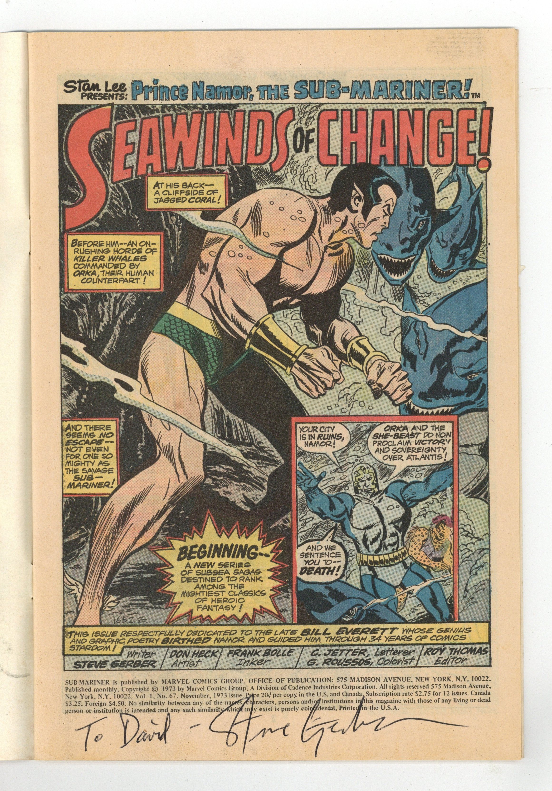 Signed by Steve Gerber (splash page). No autograph certification is included.