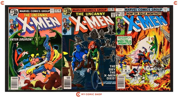 Issues 113, 114, and 115 of Uncanny X-Men (1963 1st Series). Most will grade in the VG to FN range.