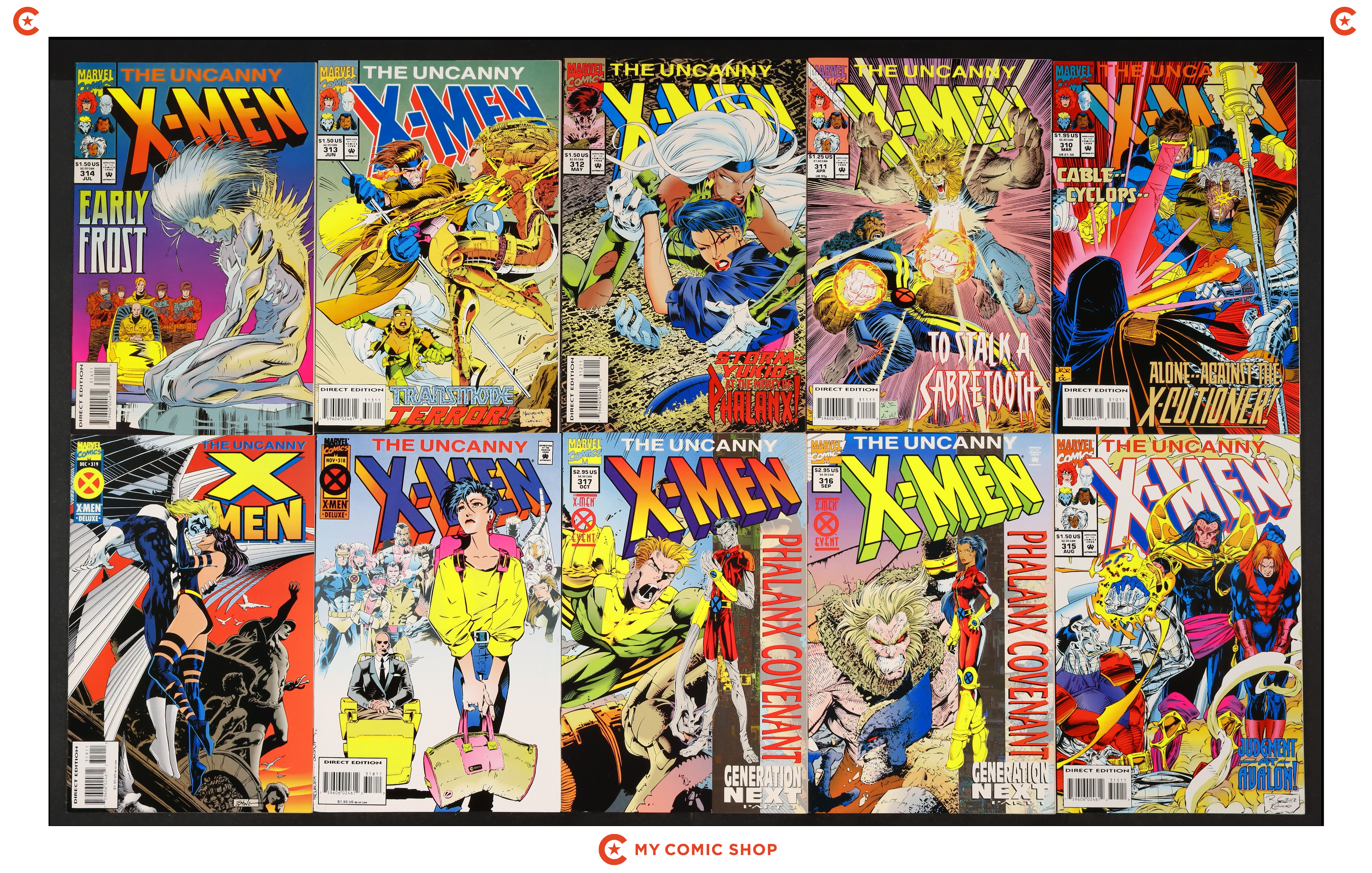 Issues 300D, 301, 302D, 303A, 304D, 305D, 306D, 307A, 308, 309, 310, 311, 312B, 313, 314, 315, 316A.D, 317A.D, 318A.D, and 319A of Uncanny X-Men (1963 1st Series). Most will grade in the FN to VF range.