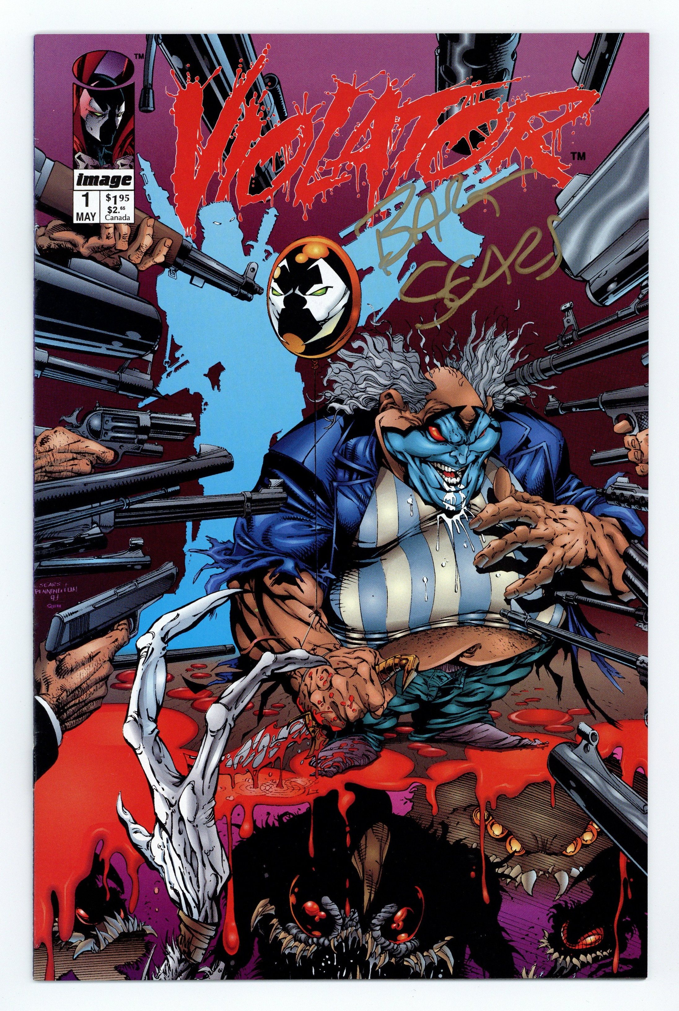 Starts Apr 27 Direct Edition. Cover pencils by Bart Sears, inks by Mark Pennington. "The World, Part 1 of 3," script by Alan Moore, pencils by Bart Sears, inks by Mark Pennington; Violator's brothers (Vacillator, Vindicator, Vandalizer and Vaporizer) come to Earth to kill Violator; Mobsters hire Admonisher to kill Violator. Behind the Scenes article by Terry Fitzgerald, pencils by Alan Moore and Bart Sears. 36 pgs., full color. $1.95. Cover price $1.95.