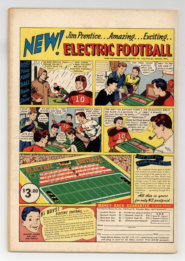 Stories and art by Maurice Gutwirth and Rod Reed. Classic pre-Code crime comics from Fawcett. Chemist Henry wants to see if he can commit the perfect crime using acid, in a story that calls its main character "Henry Holmes," a possible reference to the infamous serial killer. When gangsters get involved in the gambling over college sports, it's not long before the athletes themselves are targeted by the Mob. Shot by mobster Tiger Jack, gunsel Marty survives, and sets out to get revenge on Jack by assembling a gang of "kill-happy morons who'll laugh at bullets." Microscopic Murder; The Fixer; Mink Murder Case; Hijacker. 32 pages, Full Color. Cover price $0.10.