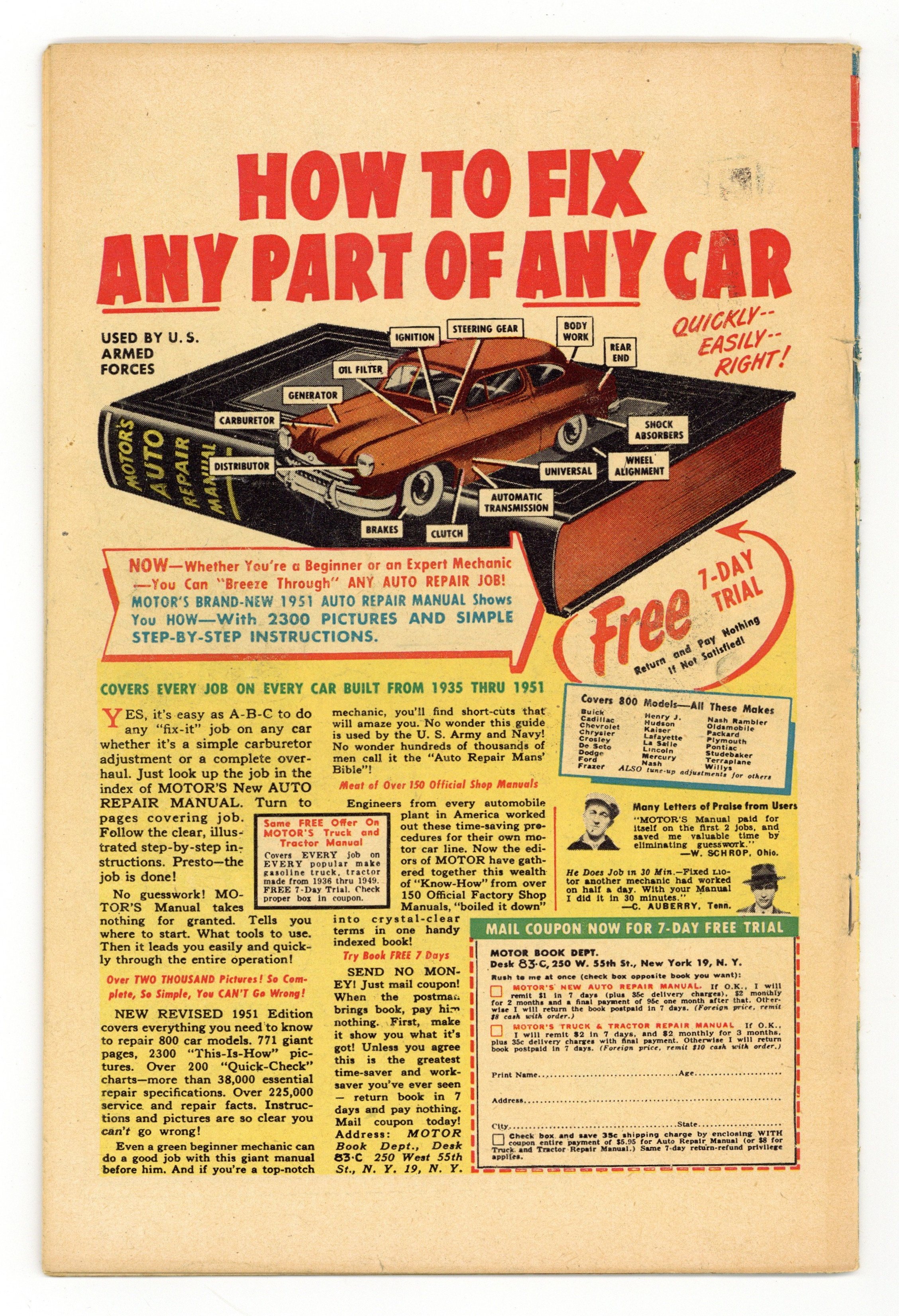 Cover by Lee Elias. Tales of war from Harvey, published as the Cold War was heating up. A rare anti-racism story, focusing on a Chinese-American soldier in the Korean conflict who is viewed with suspicion by both sides. A US soldier re-enacts the famed feats of the Biblical Samson with the fender from a Jeep. Tank commando Pete must sacrifice his beloved tank to save a platoon. Jawbone of a Jeep!; Chinese All-American; The Attack; Tanks For the Memory; Birthday in Korea; Highway to Hell! 36 pages, full color. Cover price $0.10.