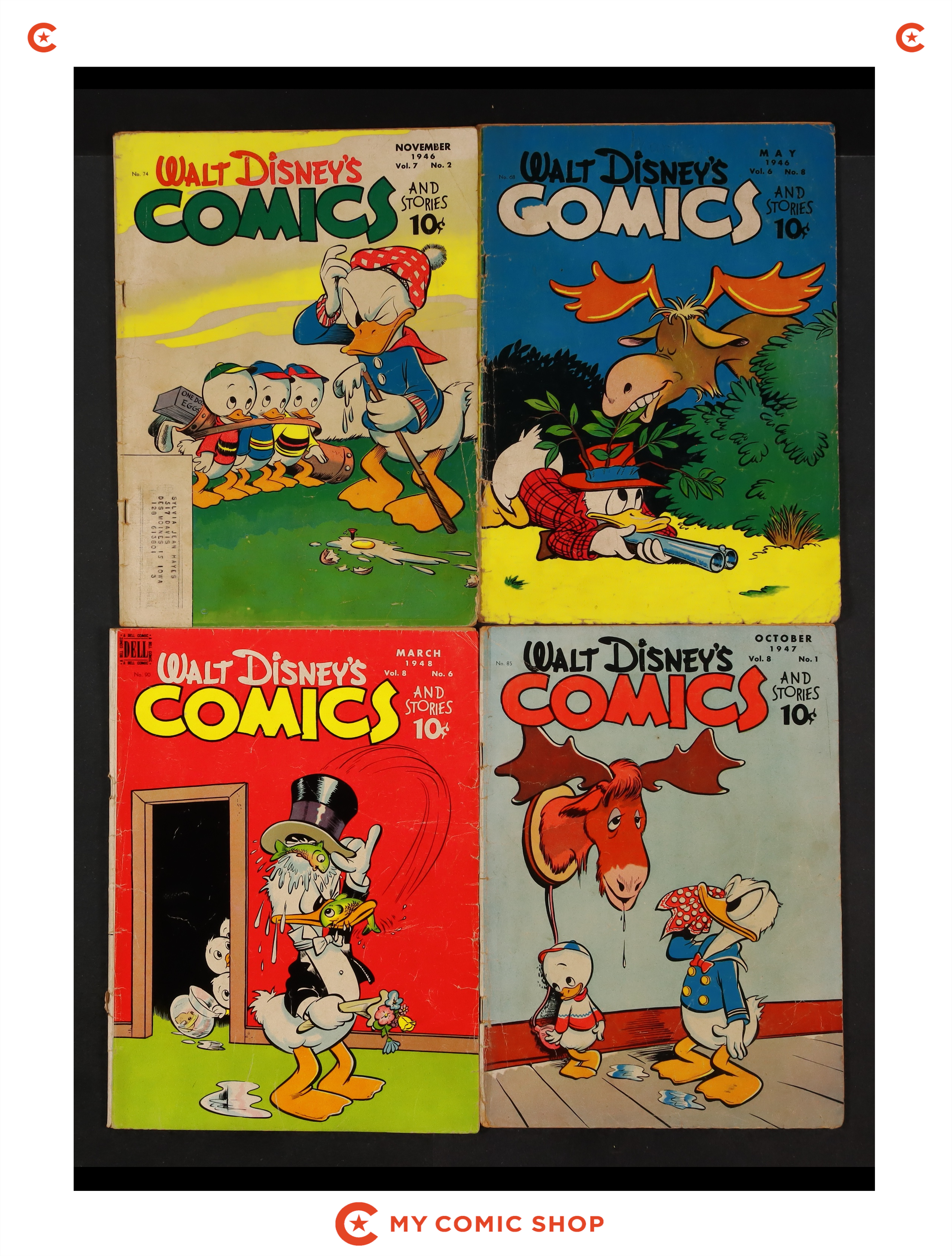 Issues 68, 74, 85, 90 of Walt Disney's Comics and Stories (1940 Dell/Gold Key/Gladstone). Most will grade in the GD- to GD/VG range.