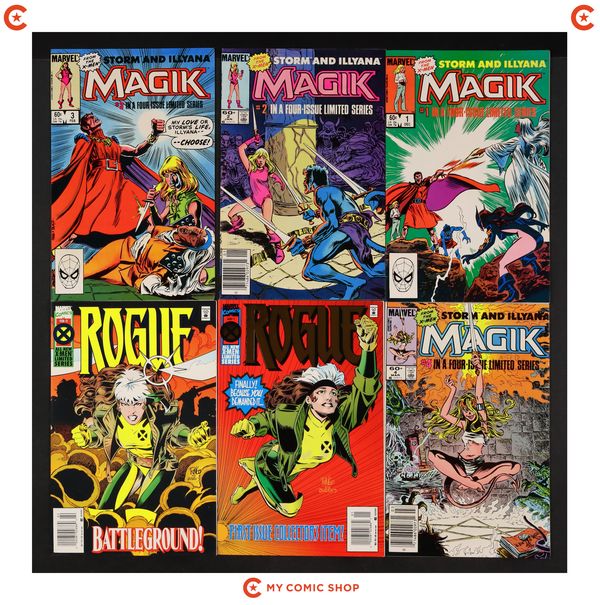Issues 1D, 2N, 3, 4N of Magik (1983 Marvel), issues 1, 2, 3N, 4 of Rogue (1995 Marvel) 1st Series, and issues 1A.D, 2, 3, 4 of Gambit (1993 1st Series Marvel). Most will grade in the FN to VF range.