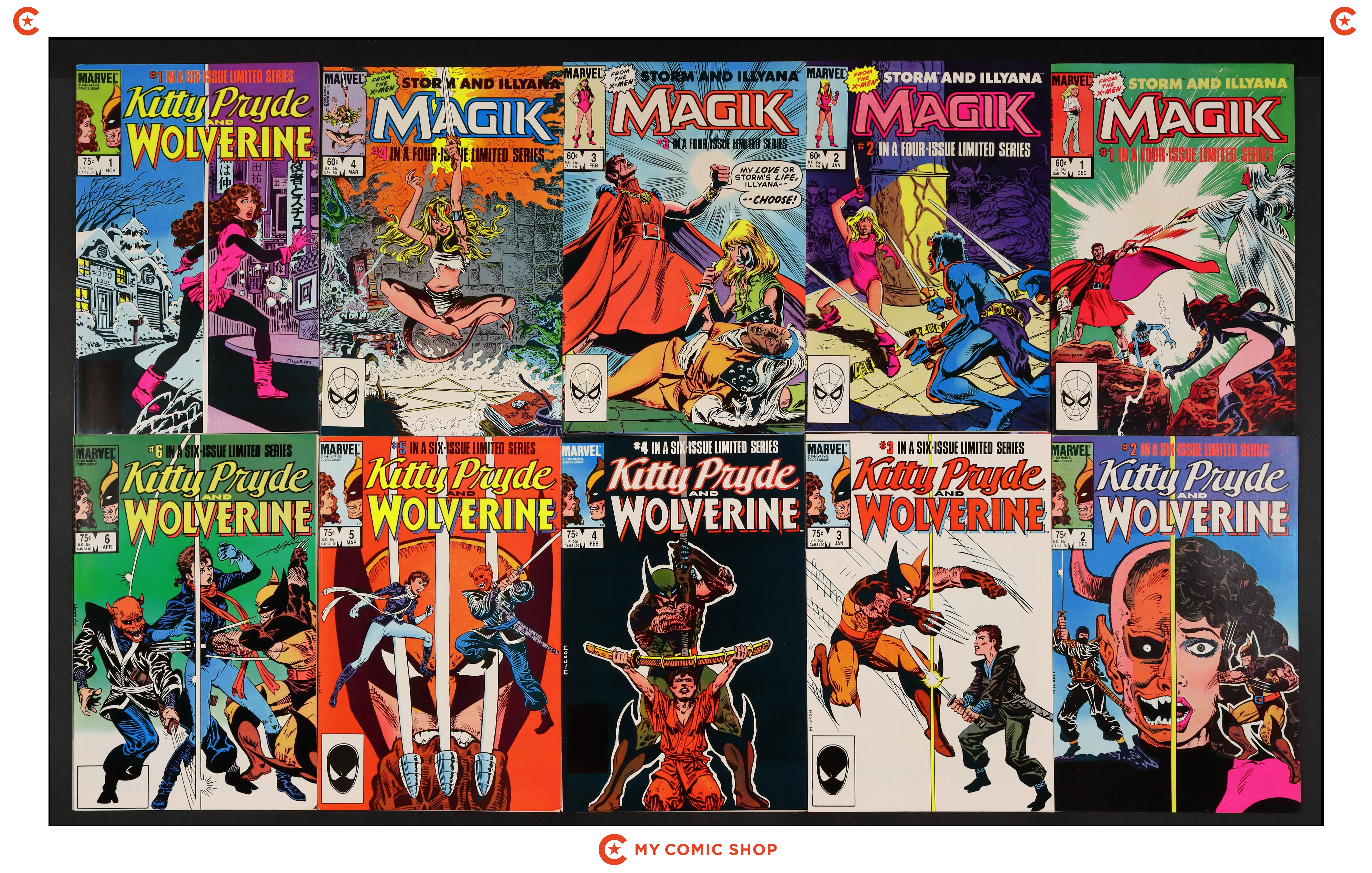 Issues 1D, 2D, 3, 4D of Magik (1983 Marvel), and issues 1, 2, 3D, 4, 5, 6 of Kitty Pryde and Wolverine (1984). Most will grade in the FN to VF range.