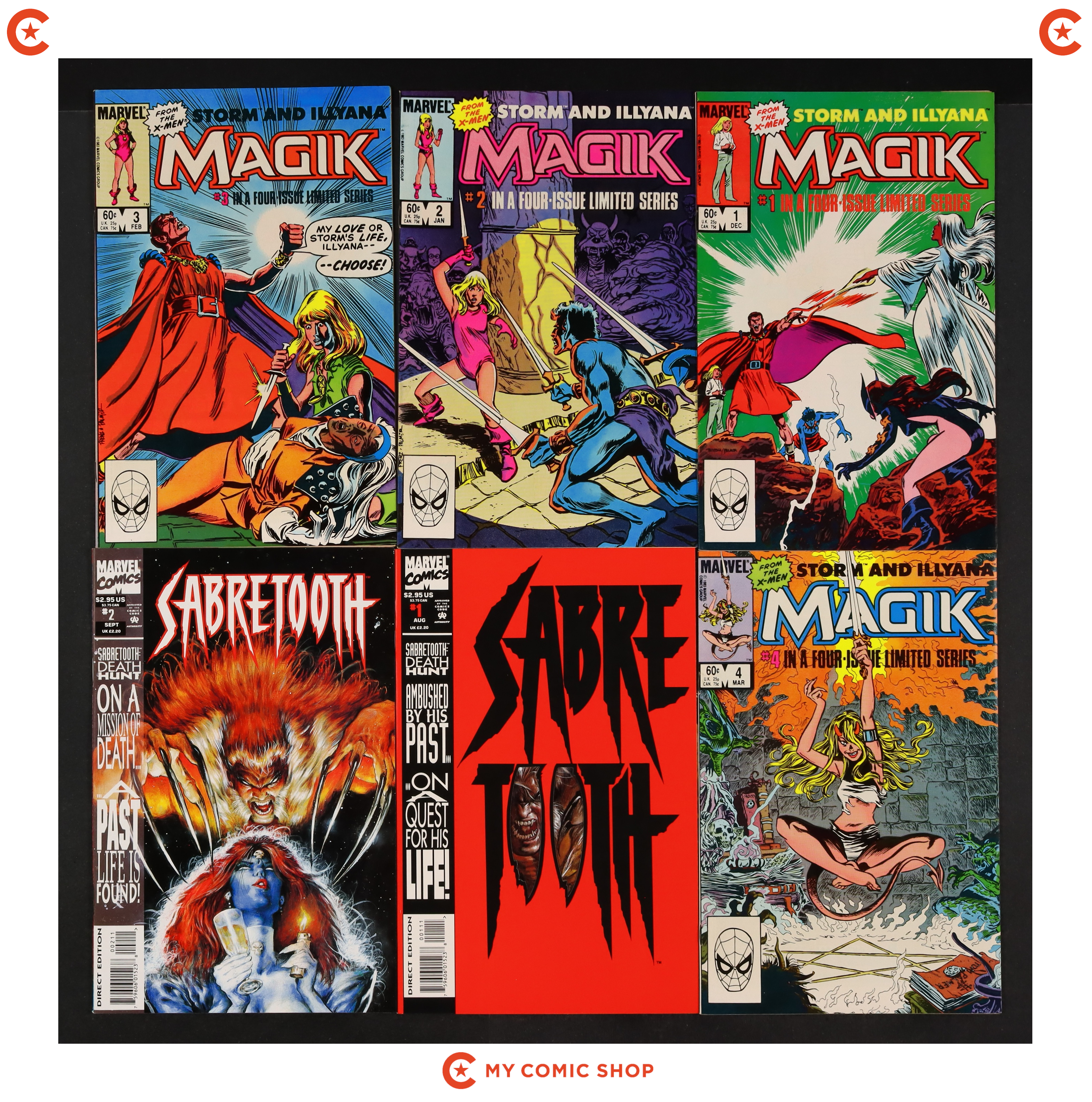Issues 1D, 2D, 3, 4D of Magik (1983 Marvel), issues 1, 2, 3D, 4 of of Sabretooth (1993 1st Series), and issues 1A.D, 2, 3, 4 of Gambit (1993 1st Series Marvel). Most will grade in the VF to NM range.