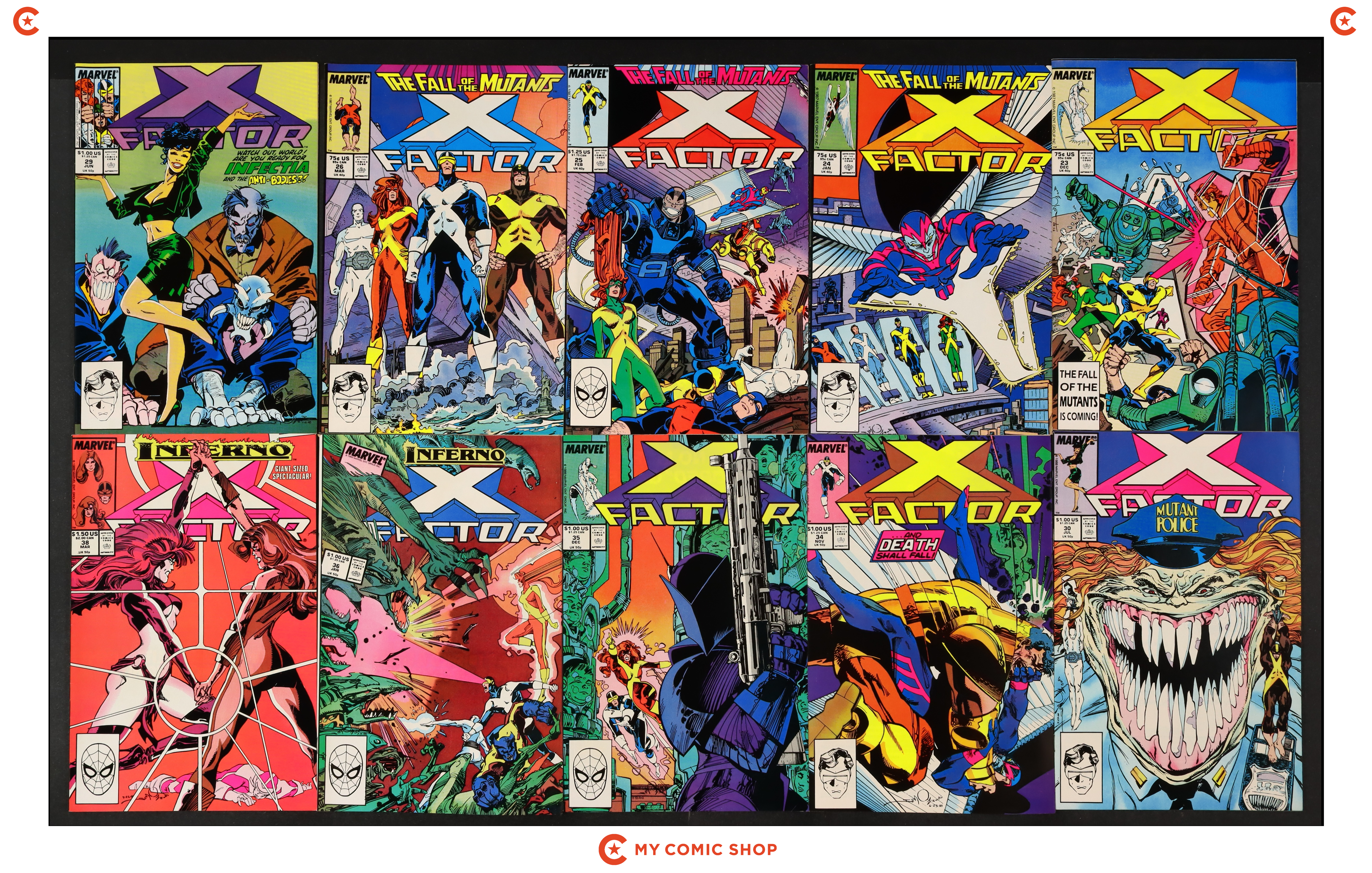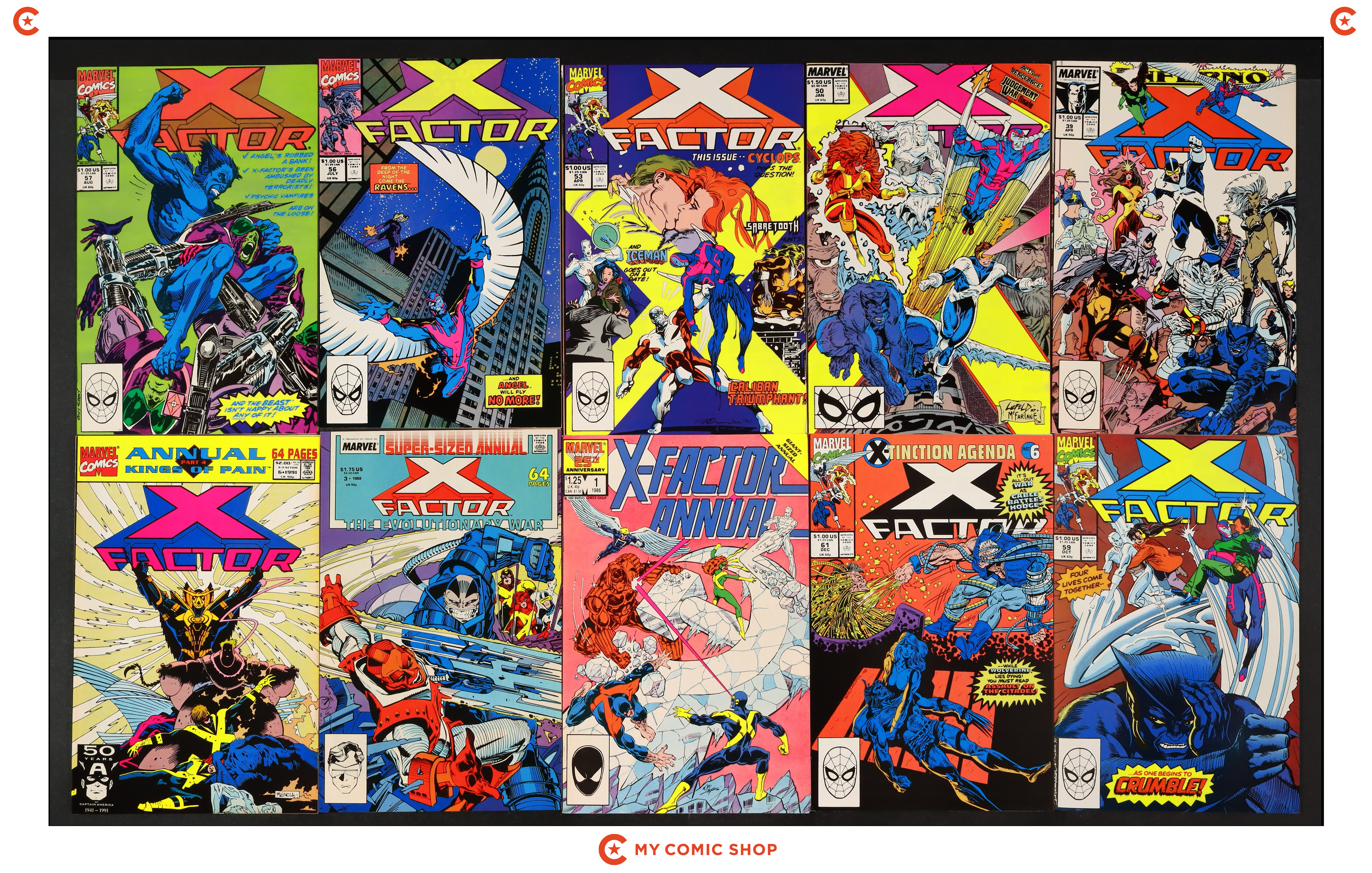 Issues 23-26, 29, 30, 34-36, 38, 39, 50, 53, 56, 57, 59, and 61 of X-Factor (1986 1st Series Marvel); and 1, 3, and 6 of X-Factor (1986 1st Series Marvel) Annual. Most will grade in the VF range with a few grading FN+