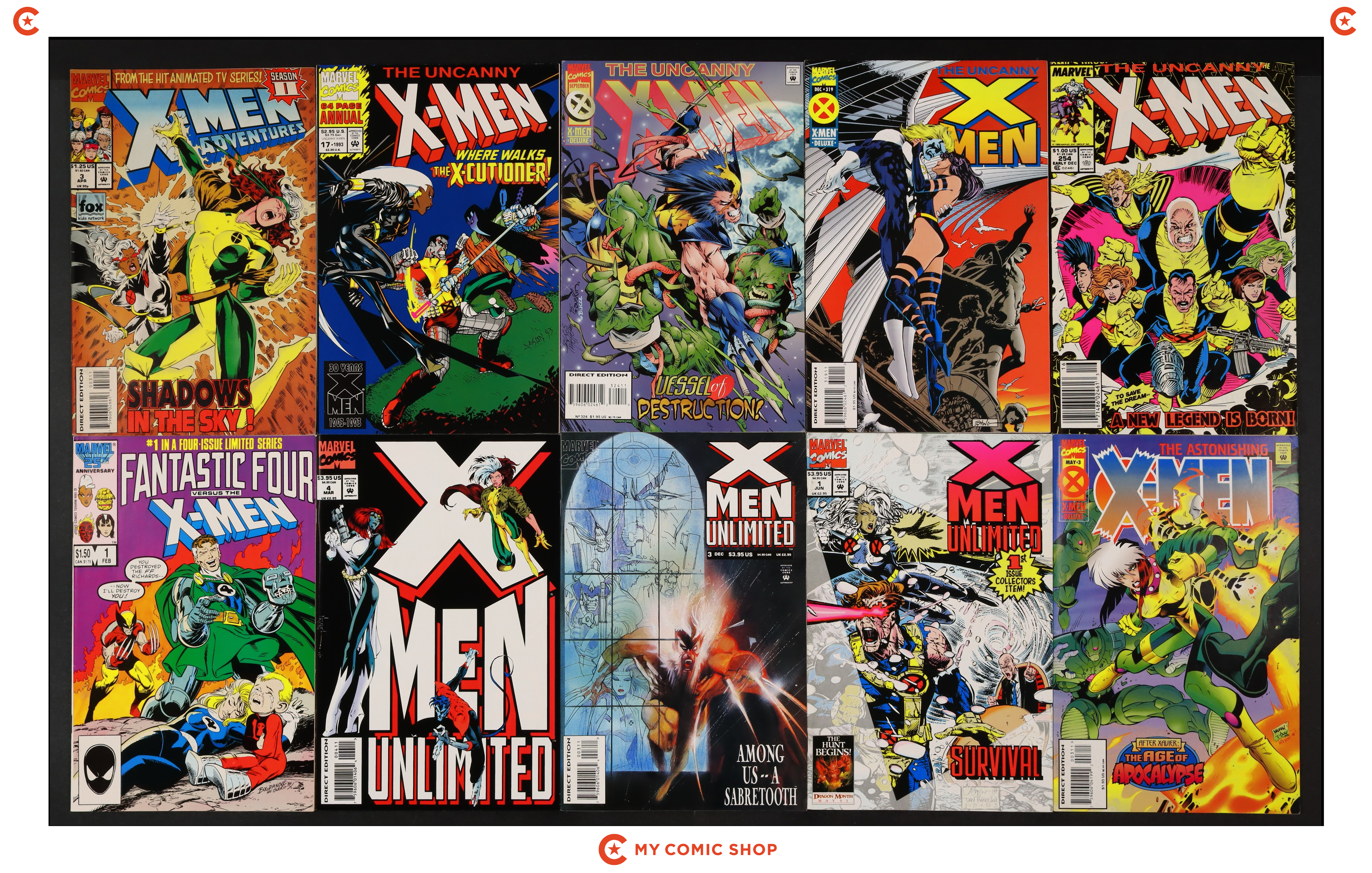 Issues 254, 319A, and 324 of Uncanny X-Men (1963 1st Series); 17U of Uncanny X-Men (1963 1st Series) Annual; 3 of X-Men Adventures (1994 Marvel) Season II; 3 of Astonishing X-Men (1995 1st Series); 1, 3, and 4 of X-Men Unlimited (1993 1st Series); and 1 of Fantastic Four vs. X-Men (1987). Most will grade in the VF to FN range with #3 of X-Men Adventures grading VG.