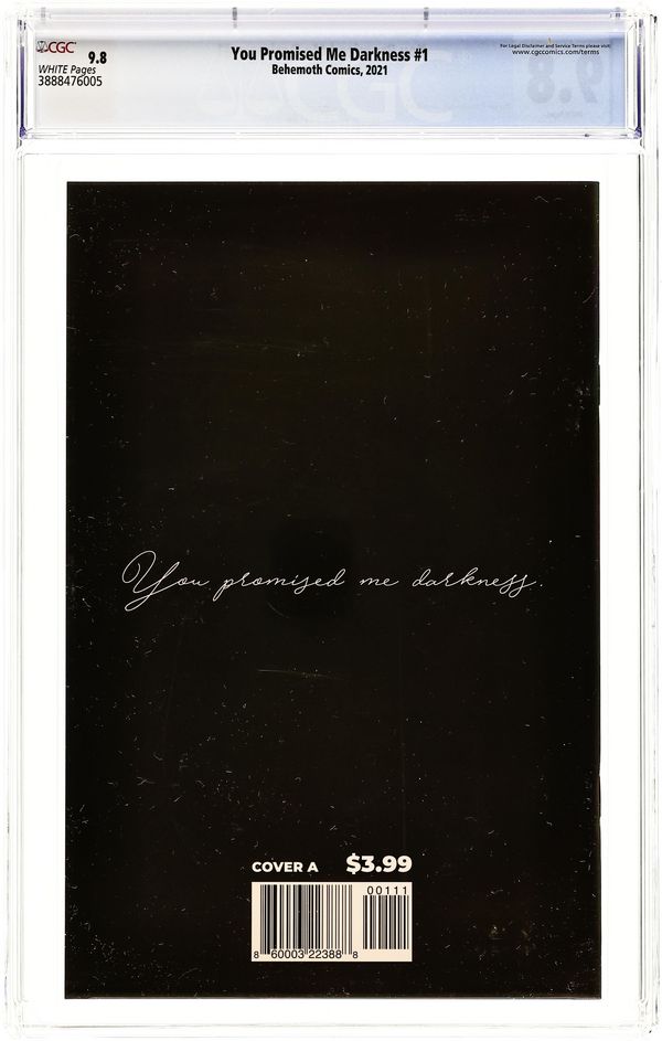 Published 2021 by Behemoth Comics.You Promised Me Darkness (2021 Behemoth) 1A CGC 9.8 Connelly Sebastian