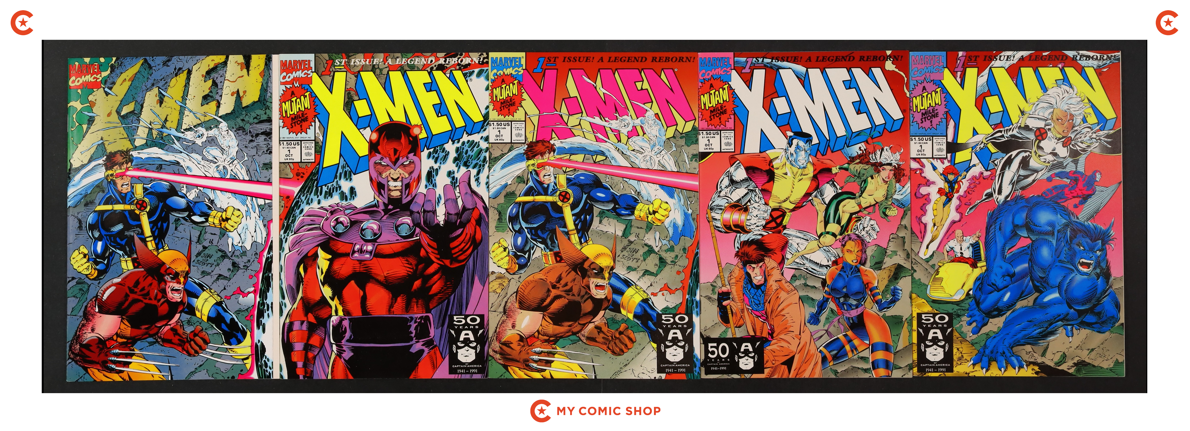 Issues 1A, 1B, 1C, 1D, and 1E of X-Men (1991 1st Series). Most will grade in VF range.