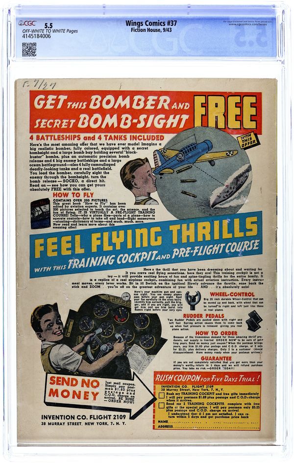 Published Sep 1943 by Fiction House.Wings Comics (1940) 37 CGC 5.5