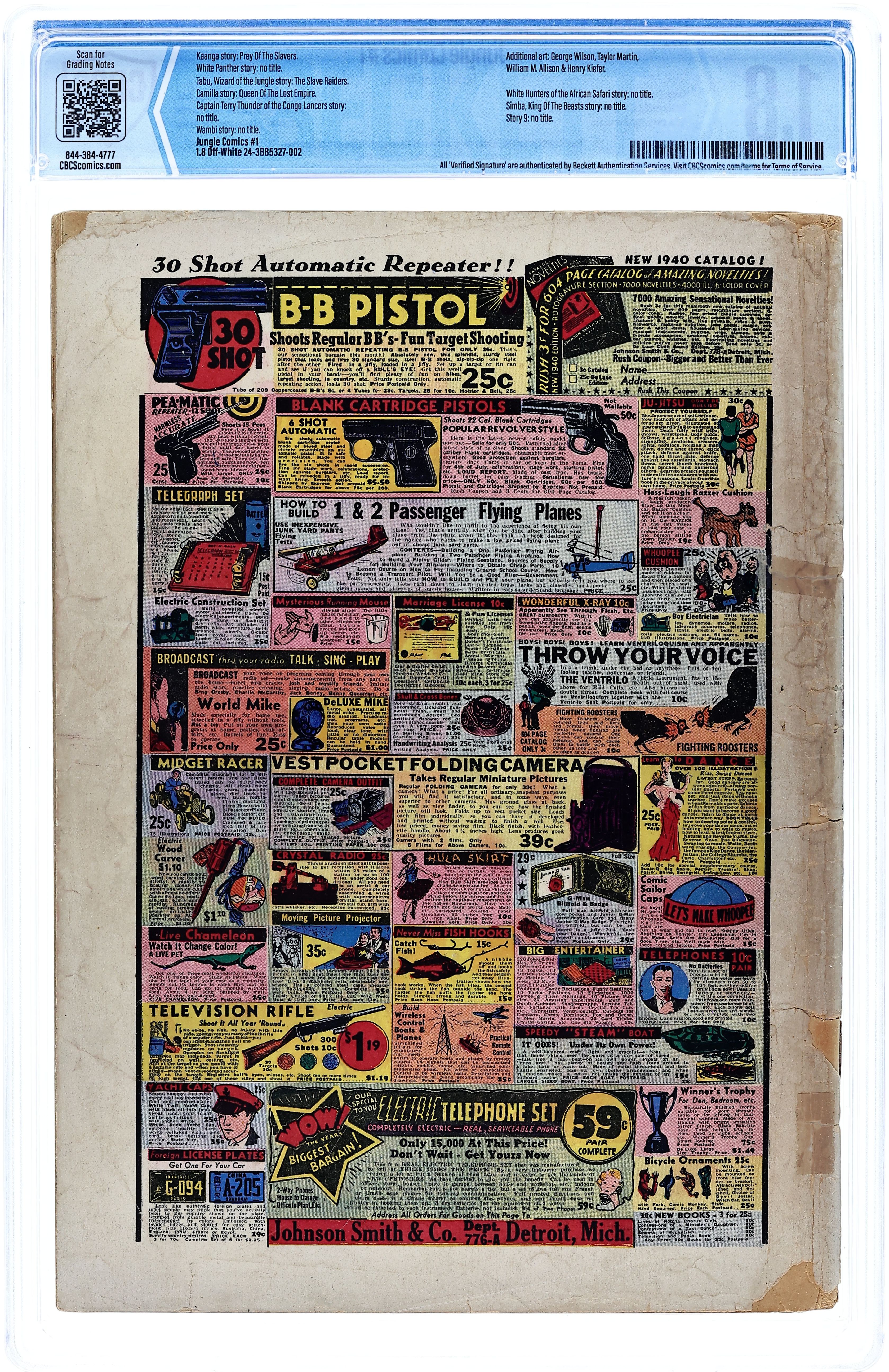 Cover by Bernard Baily. "The Spectre Strikes," script by Jerry Siegel, art by Bernard Baily; After murdering Corrigan, Benson and his thugs decide to kill the witness, Clarice, but before they can do this, a wraith-like Corrigan appears before them to exact justice. "Biff's Disguise," starring Biff Bronson, script by Albert Sulman, art by Joe Sulman. "The Mine Sweepers," starring Lt. Bob Neal, script by Robert Hirsch, art by Russ Lehman. "The Rocket Ship," starring King Carter, art by Paul Lauretta. "Submarine Pirates," starring Captain Desmo, art by Ed Winiarski. "Murder in the Ring," starring Detective Sergeant Carey, script and art by Joe Donohoe. "The Search for Half Breed Charlie," starring Sergeant O'Malley of the Red Coat Patrol, art by John Lehti. "The Fall of Billy Evans," starring Bulldog Martin, art by Bart Tumey. 68 pgs., full color. $0.10.