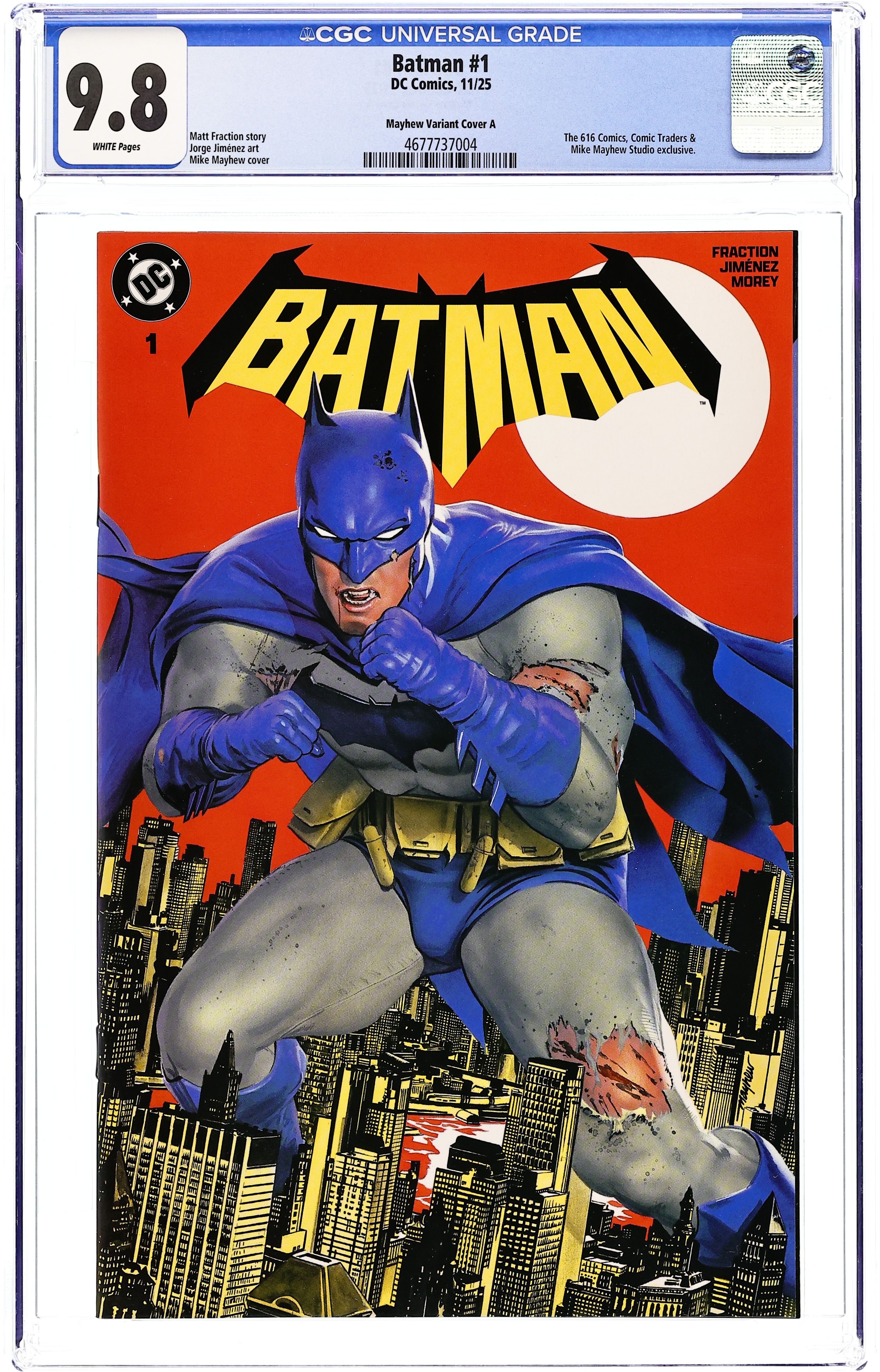 Ends Feb 23 7:34 PM CST Bid History 5 bids Current Bid $24 Your Secret Max Bid If you'd like to bid, please log in or register. Retailer Exclusive Variant Cover by Chris Stevens. Written by Matt Fraction. Art by Jorge Jimenez. A BOLD NEW ERA OF BATMAN STARTS HERE! A new day dawns for the Dark Knight Detective as Eisner Award-winning writer Matt Fraction (Hawkeye, Superman's Pal Jimmy Olsen) joins forces with superstar artist Jorge Jimenez (Batman, Summer of Superman Special) for an unforgettable new era of Batman! The best superhero in comics gets a brand-new first issue to kick off this new era that will test Batman and Bruce Wayne like never before! 40 pages, full color. Rated T+