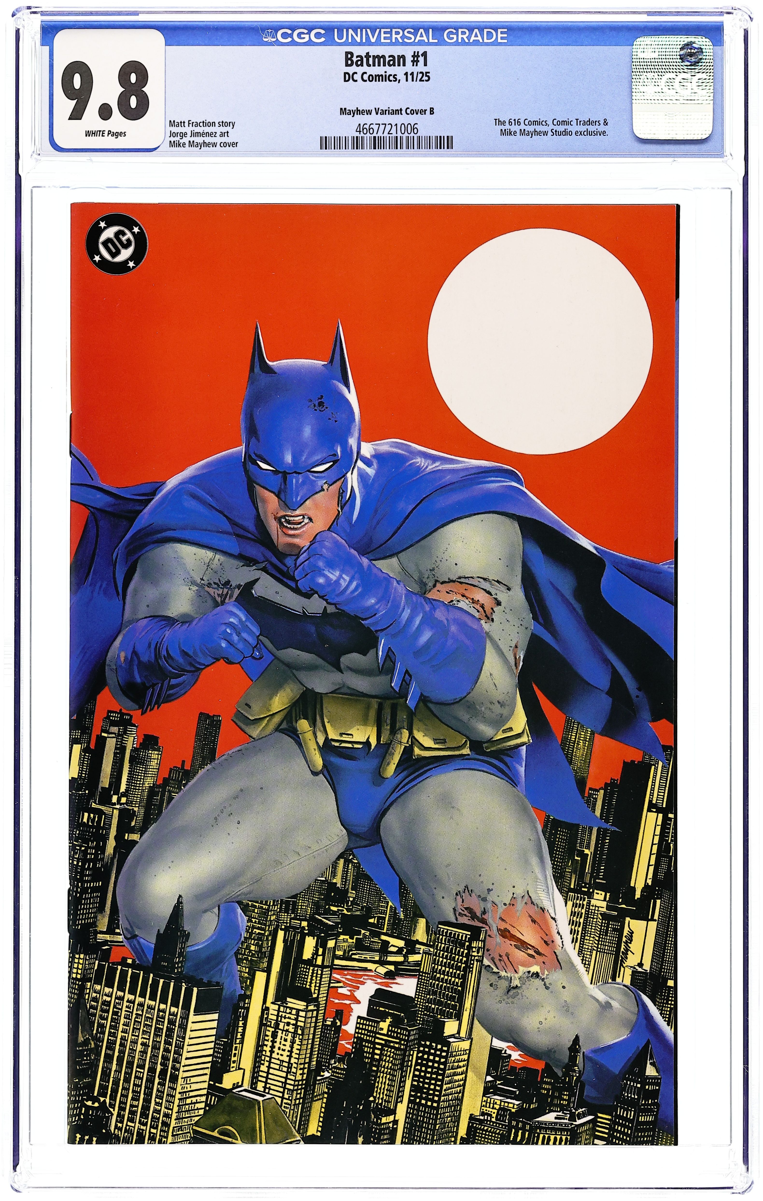 Ends Feb 23 7:34 PM CST Bid History 5 bids Current Bid $31 Your Secret Max Bid If you'd like to bid, please log in or register. Rose City Comic Con Exclusive Variant Cover by Liam Sharp. Written by Matt Fraction. Art by Jorge Jimenez. A BOLD NEW ERA OF BATMAN STARTS HERE! A new day dawns for the Dark Knight Detective as Eisner Award-winning writer Matt Fraction (Hawkeye, Superman's Pal Jimmy Olsen) joins forces with superstar artist Jorge Jimenez (Batman, Summer of Superman Special) for an unforgettable new era of Batman! The best superhero in comics gets a brand-new first issue to kick off this new era that will test Batman and Bruce Wayne like never before! 40 pages, full color. Rated T+
