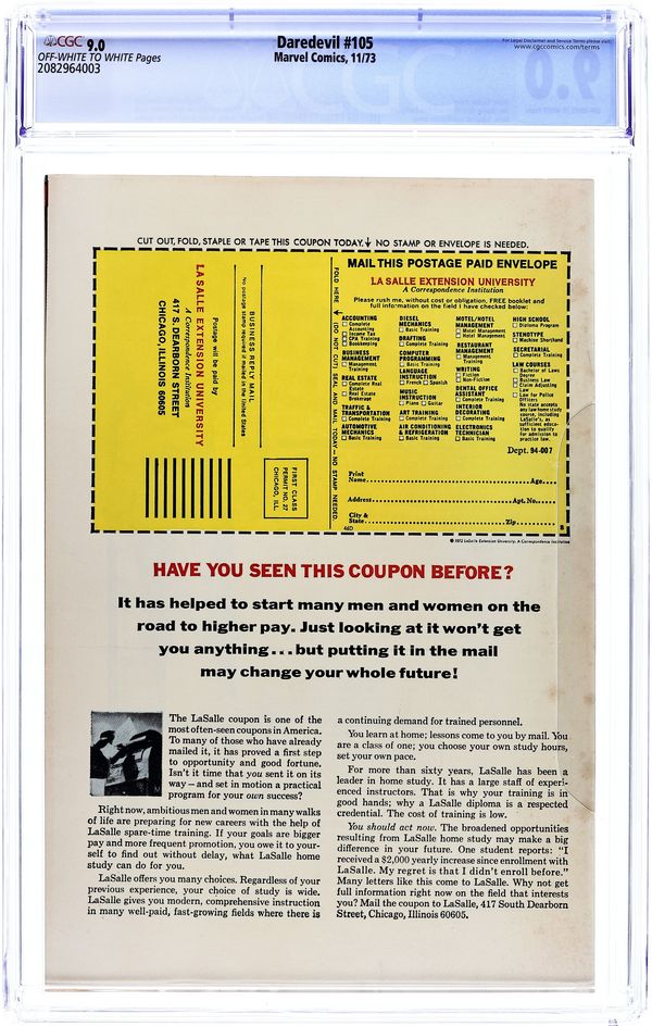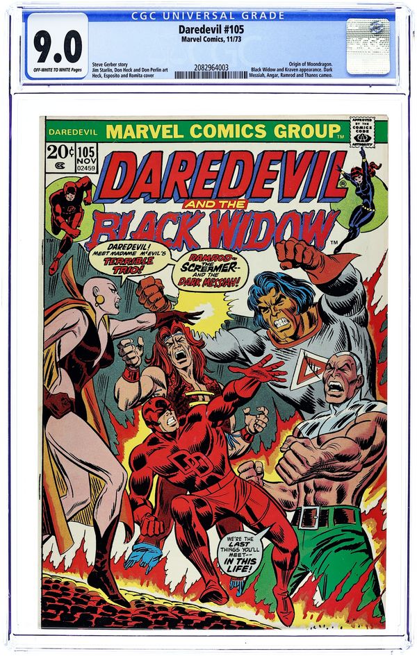 Tags: Marvel Legacy Numbering: Daredevil (part 105), Thanos: The Final Threat (part 9), Black Widow, DaredevilDaredevil (1964 1st Series) 105 CGC 9.0
