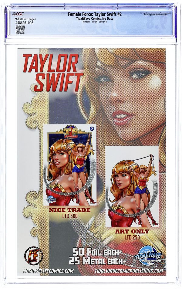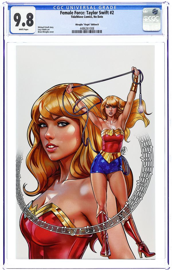 Starts Apr 4 "White" Edition Virgin Cover by Brian Miroglio - limited to 250 copies. Story by Michael Frizell. Art by Lucy Fidelis. A biographical comic that looks into the life and success of pop sensation, Taylor Swift. 28 pages, full color.
