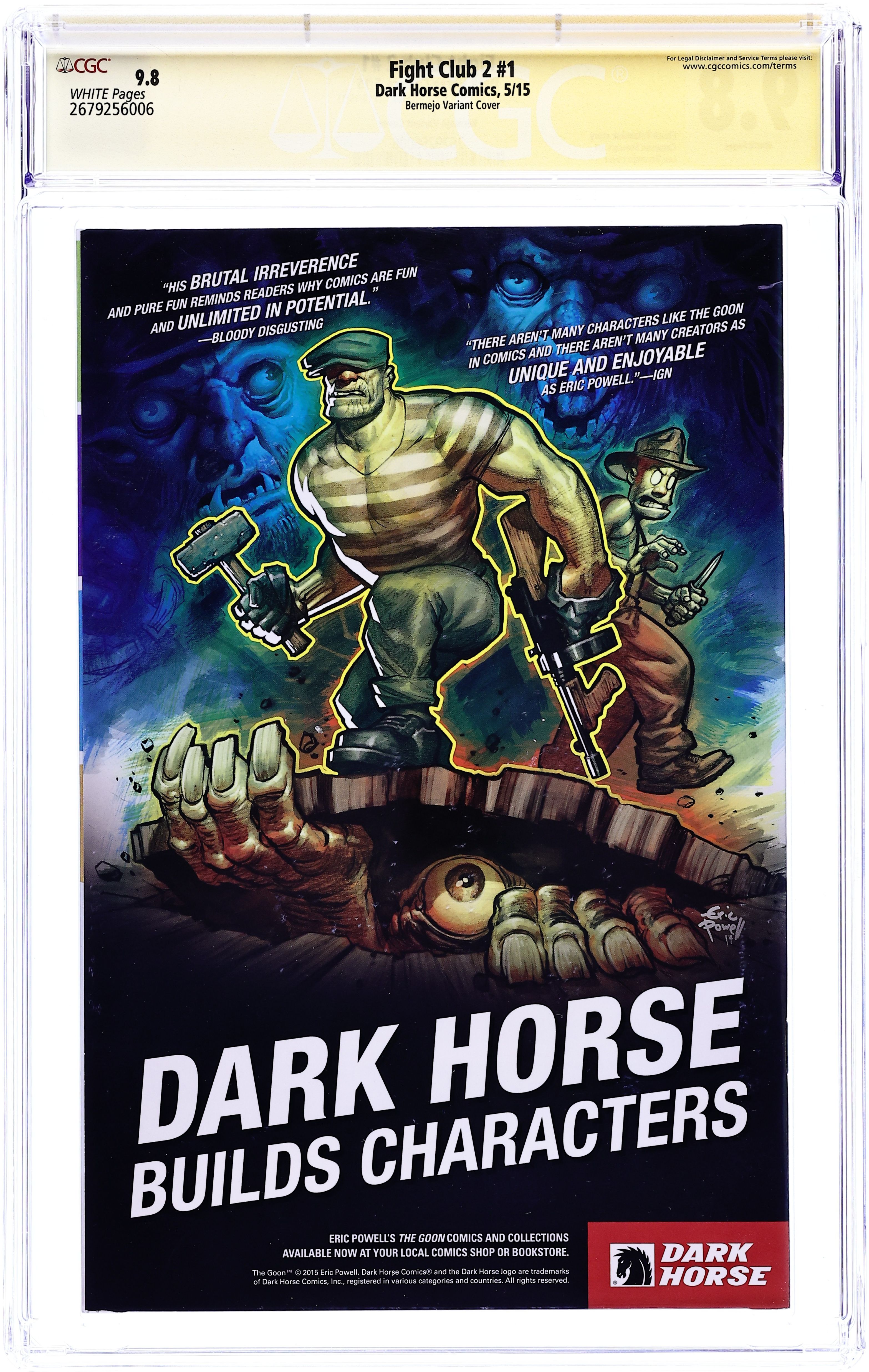 Published May 2015 by Dark Horse.Fight Club 2 (2015 Dark Horse) 1C CGC 9.8 SS Palahniuk Bermejo Variant