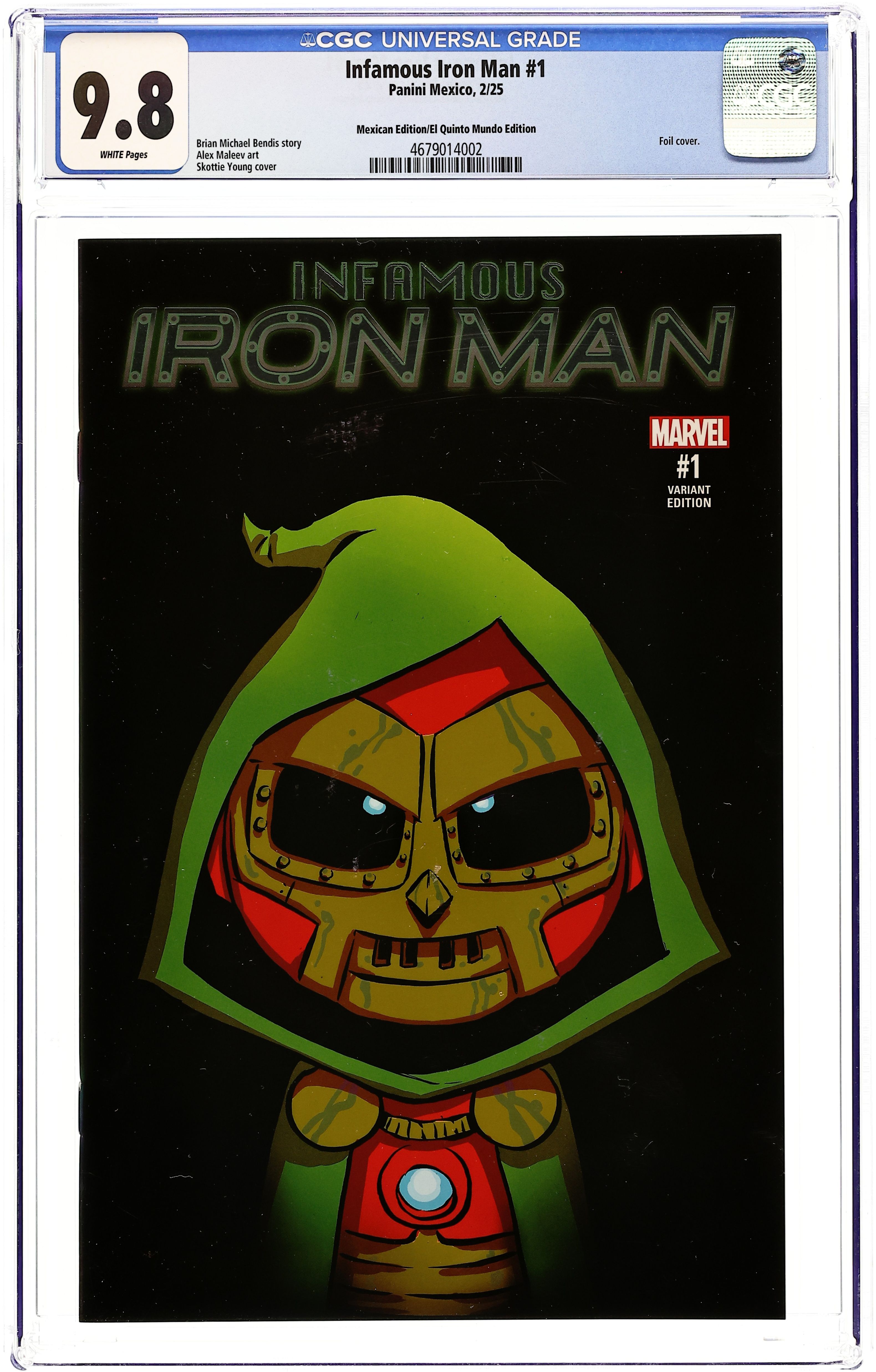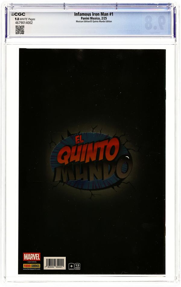 Published Feb 2025 by Panini Mexico.Infamous Iron Man (Mexican 2025 Panini Mexico) 1QUINTO CGC 9.8