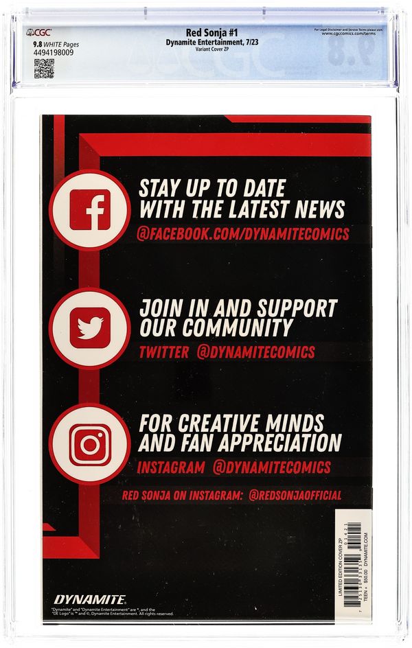 Tags: Red SonjaPublished Jul 2023 by Dynamite Entertainment.Red Sonja (2023 Dynamite) 1ZP CGC 9.8