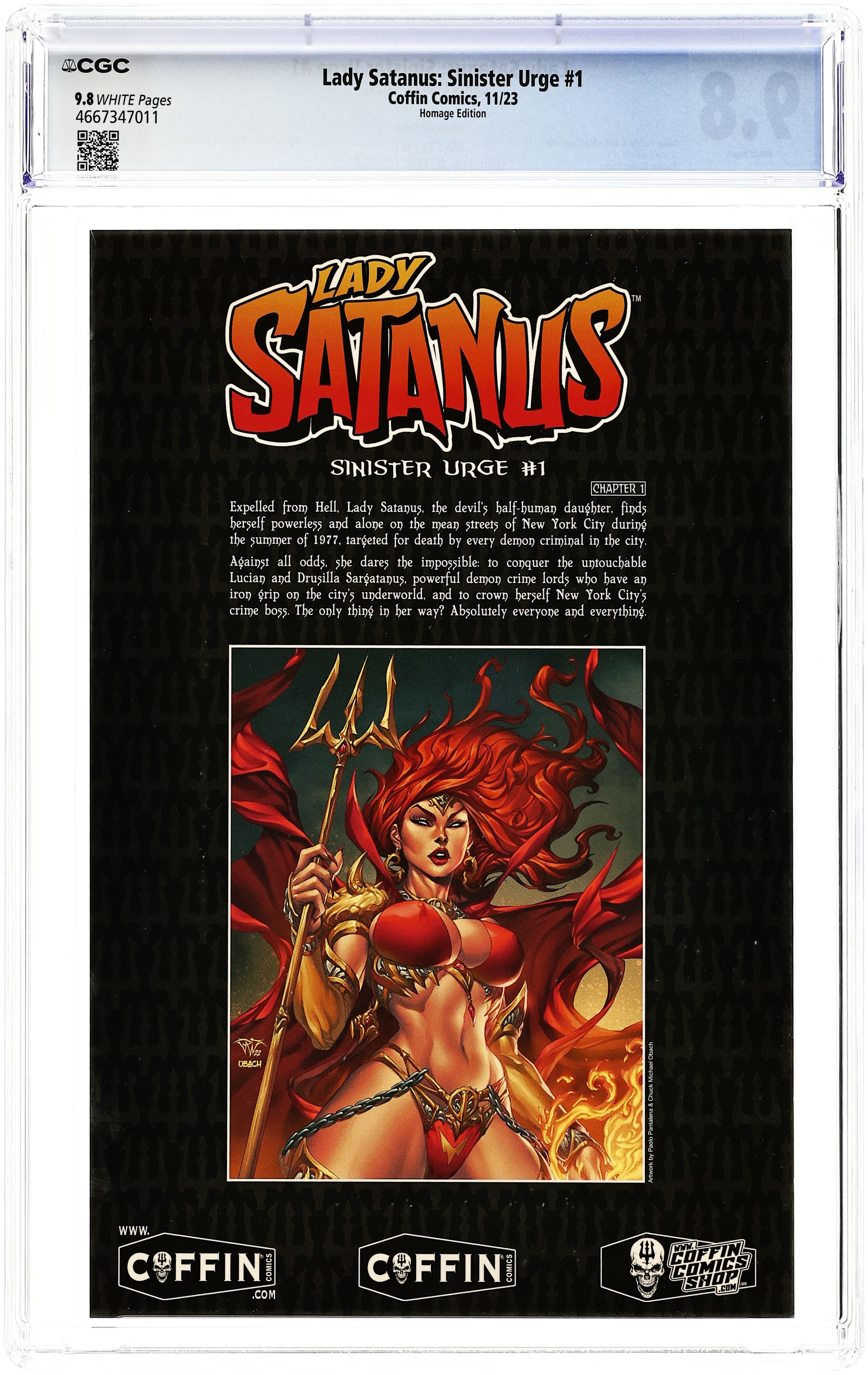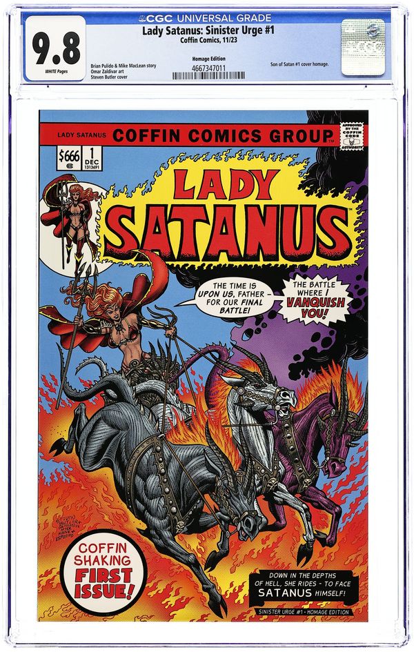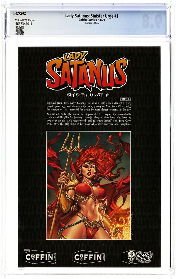 Published Nov 2023 by Coffin Comics.Lady Satanus Sinister Urge (2023 Coffin Comics) 1HOMAGE CGC 9.8