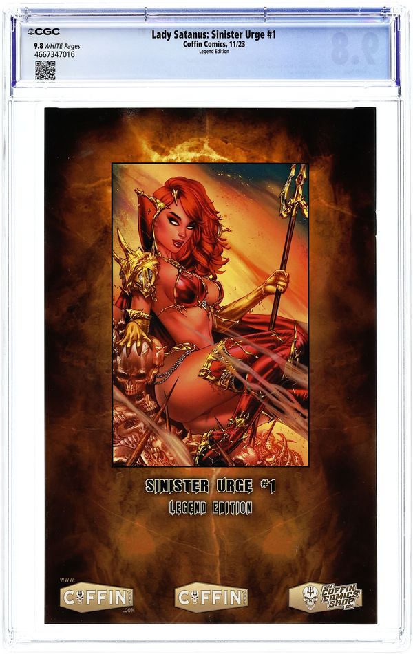 Published Nov 2023 by Coffin Comics.Lady Satanus Sinister Urge (2023 Coffin Comics) 1LEGEND.A CGC 9.8