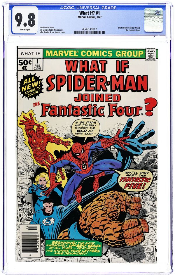 Starts Feb 2 Cover by Ron Wilson and Joe Sinnott. What if Spider-Man Joined the Fantastic Four? Script by Roy Thomas, pencils by Jim Craig, inks by Pablo Marcos; Spider-Man becomes a member of the FF; Cameos by Killraven, the Squadron Supreme, and Deathlok. Hostess Fruit Pie ad with the Hulk, pencils by Dave Cockrum. Ad for Richochet Racers with Spider-Man and Captain America. Roy Thomas discusses how the title came about. 52 pgs. Cover price $0.50.