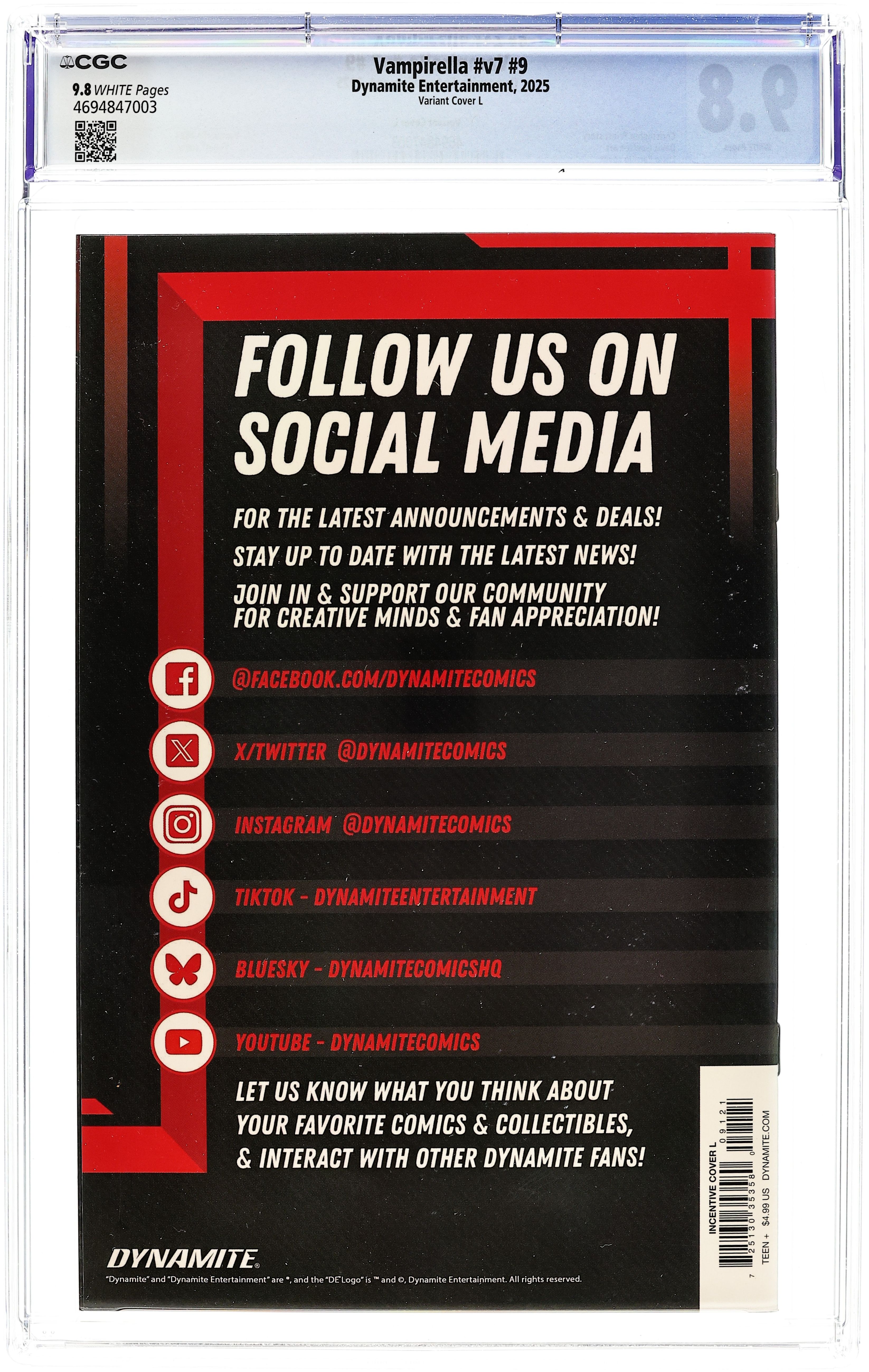 Tags: Vampirella, VampiresPublished 2025 (est.) by Dynamite Entertainment.Vampirella (2025 Dynamite) 9L CGC 9.8