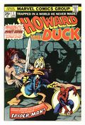 Starts Jan 19 Written by Steve Gerber. Art by Frank Brunner and Steve Leialoha. Cover by Frank Brunner. Howard the Barbarian; Legendary creators Steve Gerber and Frank Bruner present the audacious, quirky, downright filthy Howard the Duck in his own ongoing series!; Howards debut adventure guest stars a plethora of Marvel Heroes--Spider-Man, Conjurer, and many more; Howard is thinking of committing suicide and then finds himself involved in a bizarre adventure where he meets Beverly Switzler and Spider-Man for the first time, and faces off against Pro-Rata, the Financial Wizard. Continued from Giant-Size Man-Thing #5. 36 pgs., full color. $0.25. Cover price $0.25.