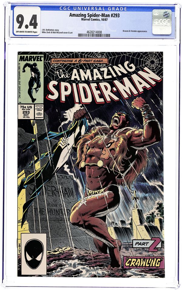 Tags: Marvel Legacy Numbering: Amazing Spider-Man (part 293), Spider-Man Kraven's Last Hunt (part 2)Amazing Spider-Man (1963 1st Series) 293 CGC 9.4