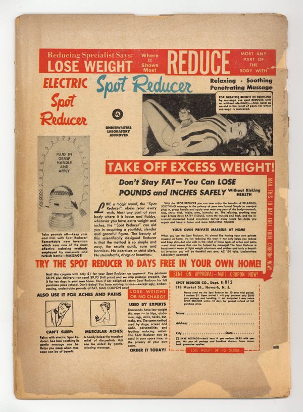 Starts Jan 3 "The Scarecrow," art by Russ Heath; Scrawny Tim Blake buys a magic potion to build up his muscles, which is very successful at first, until it sends his body out of control. "The Pact" text story. "Don't Look!," art by Jay Scott Pike; A madman offers to give an attorney a magic mirror that reveals how people will look in the future but there is a secret terrible cost. "How Clumsy Can Ya Be?," art by Howard Post; A would-be magician bungles his training in India, and when he returns to the States to begin his career, he bungles his first performance, too. "Thru the Door," pencils by Ben Brown, inks by David Gantz; A boxer's manager tries to persuade the boxer's wife to run away with him, but the boxer overhears and chases after them; They barricade themselves in a room, but the manager then learns that the woman is really a hungry vampire. The Hiding Place, art by Gene Colan; When Ann and her lover Paul are confronted by Ann's husband, she panics and kills him. 36 pgs., full color. $0.10. Cover price $0.10.