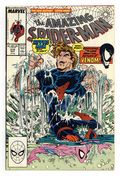Starts Dec 15 Direct Edition. "A Matter of Life and Debt!" Script by David Michelinie. Art by Todd McFarlane. Cover by Todd McFarlane. Life is full of challenges and on this day Peter Parker and his web-spinning alter-ego face three! The first, Hydro-Man attempts a payday robbery! But the Spectacular Spider-Man stops the heist! The second, Nathan Lubensky steals money from Aunt May to pay his gambling debts! However, Peter quickly shuts down his operation! And the fateful third...Venom escapes from the Vault! Wow, this challenge will be more difficult and more deadly starting next issue! Cameo appearances by Mary Jane Watson and Kristy Watson. (Notes: Venom previously appeared in Amazing Spider-Man 300.) The letters page contains a statement of ownership: average print run 451,930; average paid circulation 271,100. 36 pgs. Cover price $1.00.