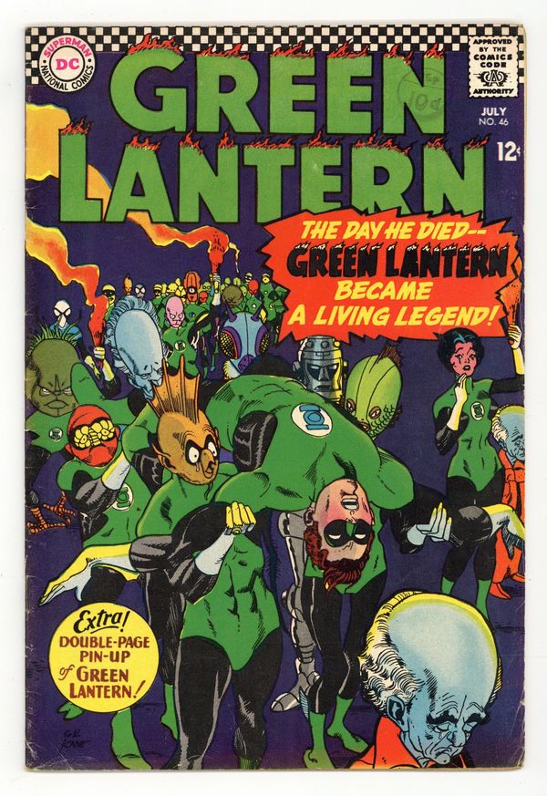 Ends Dec 29 8:25 PM CST Bid History 4 bids Current Bid $8 Your Secret Max Bid If you'd like to bid, please log in or register. Cover pencils by Gil Kane, inks by Murphy Anderson. Practice Makes The Perfect Crime, script by John Broome, pencils by Gil Kane, inks by Sid Greene; Black Hand uses he power-light to create the illusion that Green Lantern is Black Hand, leading to GL's arrest for stealing the Dona Maria. The Fight For the Championship of the Universe, script by John Broome, pencils by Gil Kane, inks by Sid Greene; An intergalactic fighting champion wants a shot at Green Lantern. 36 pgs. $0.12. Cover price $0.12.