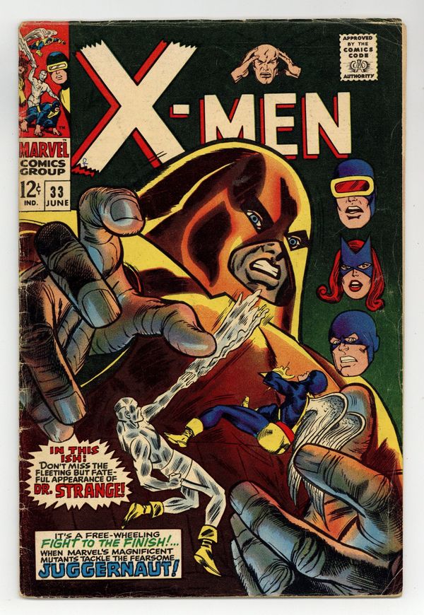 Starts Jan 26 Cover pencils by Gil Kane, John Romita, and Werner Roth, inks by Gil Kane and John Romita; Juggernaut rampages to Factor Three headquarters; Professor X shows Jean a story about the ruby of Crimson Bands; Cameos by Doctor Strange and the Ancient One. Ad for the Merry Marvel Marching Society. 36 pgs. $0.12. Cover price $0.12.