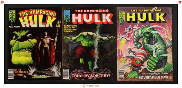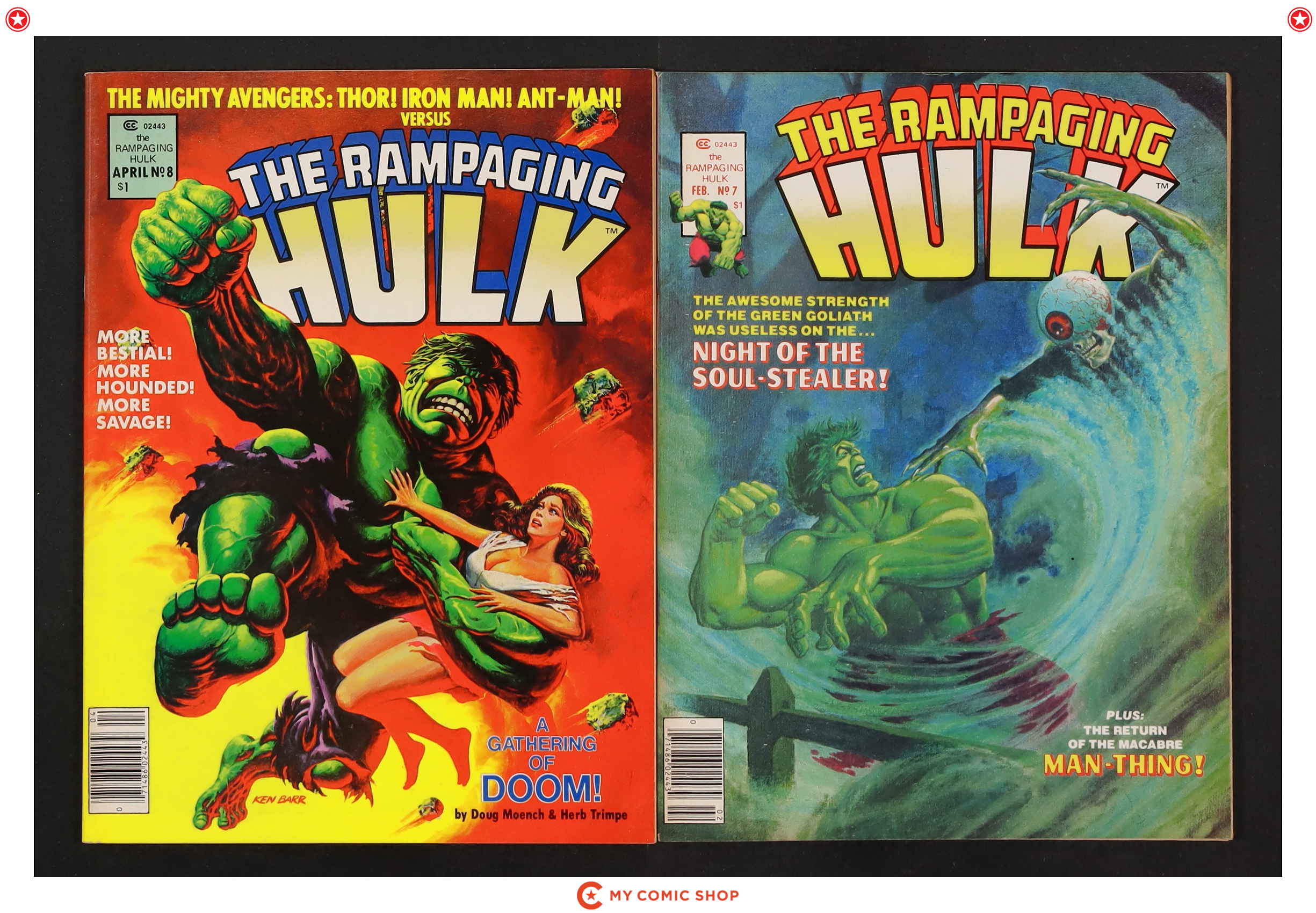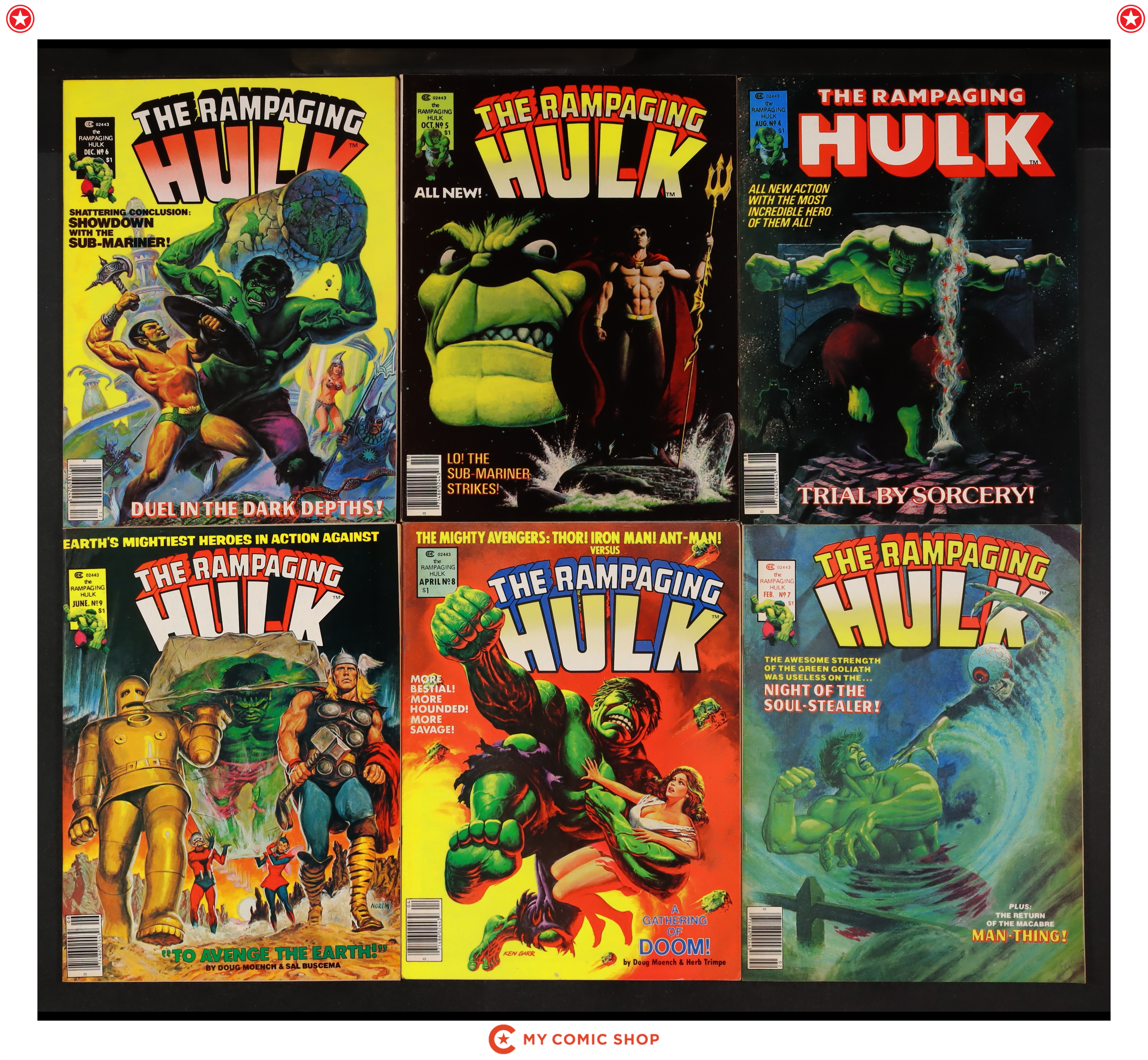 Issues 4-9 of Rampaging Hulk (1977 Magazine). Most will grade in the VG to FN- range.