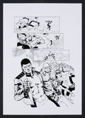 A great action page that sees Nastee confronted by Notti, who is actually aiming for the goon standing behind Nastee. Fantastic inking on the headshot in the final panel from Williams! Signed by the artist and top margin. Pencil and ink on art board. 11" x 17".
