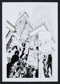 A powerful splash from this intense issue that sees the return of the Green Goblin to Pete's life! In the midst of a torrential storm, Pete is troubled by a recurring nightmare and where else does one plagued by nightmares go than to their mother (figure)! A great example of Ramos' ability to create powerful and energetic figures, even in a 'civilian' scene! Signed by the artists in lower margin. Pencil and ink on Marvel Comics art board. 11" x 17 1/4". NOTE: Title logo, credits, and indicia stats are reproductions.