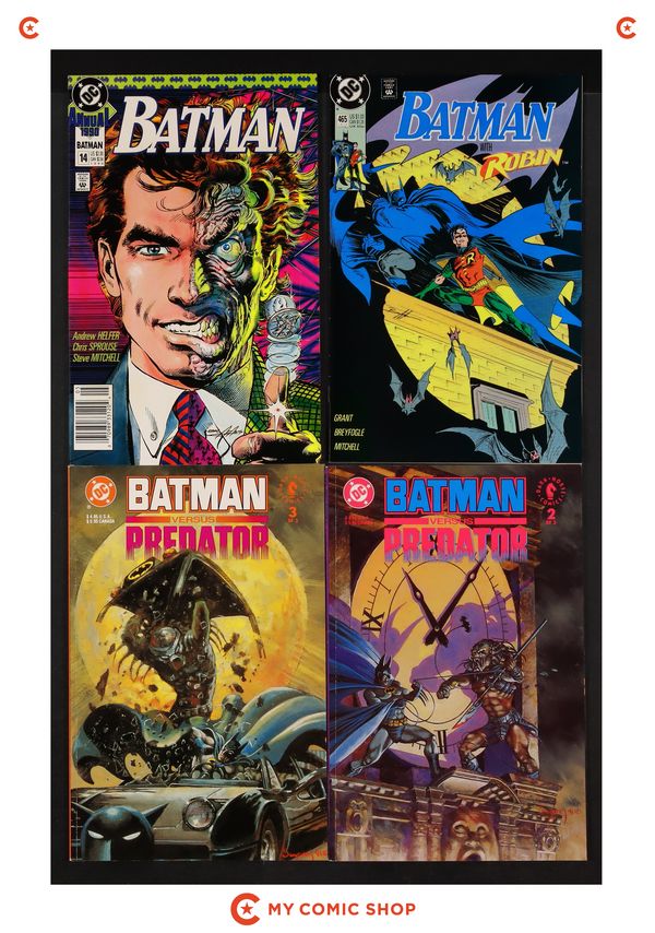Issues 433, 443, 444, 446, 454, 457-459, 462, 463, and 465 of Batman (1940); 14 of Batman (1940) Annual; and 2A and 3A of Batman vs. Predator (1991 1st Series). Most will grade in the VF range with a few grading FN.