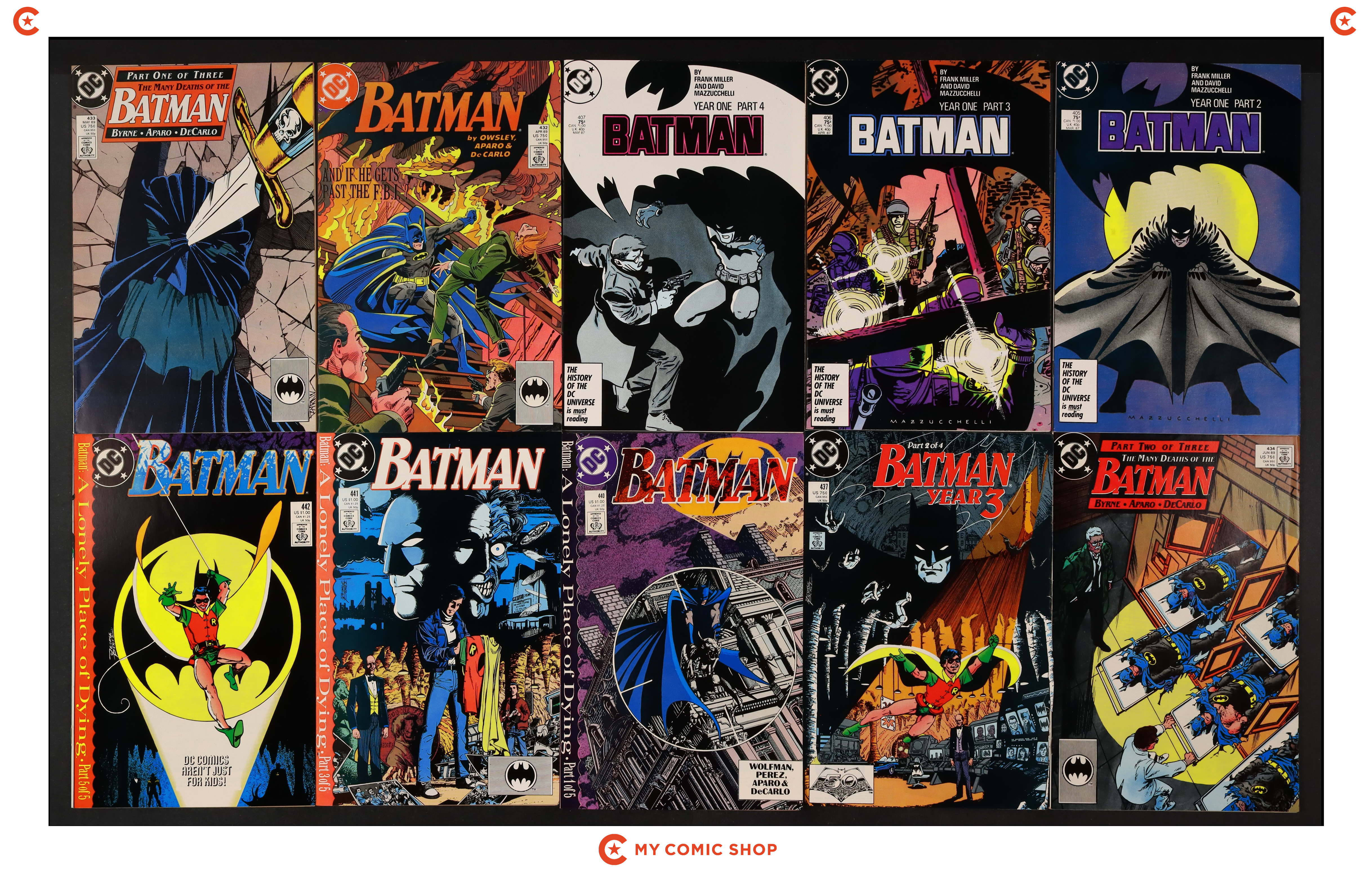 Issues 400, 433, 434, 435, 436, 437, 438, 439, 440, 441, 442 of Batman (1940). Most will grade in the FN to VF range.