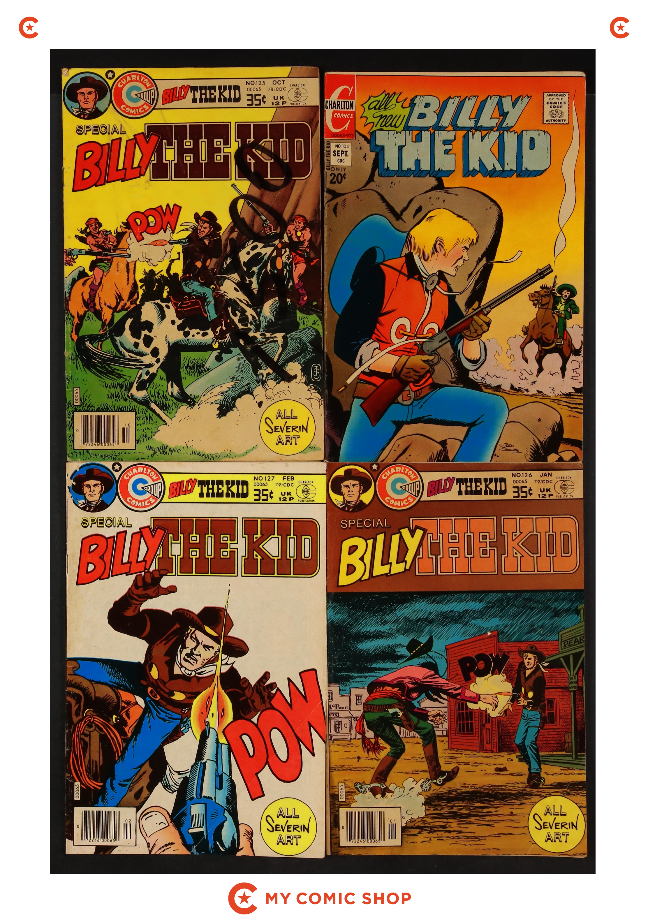 Issues 104, 125-128, 130, and 136 of Billy the Kid (1956 Charlton). Most will grade in the VG to GD range.