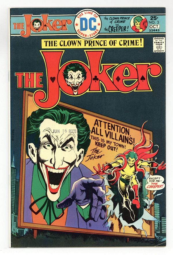 Starts May 11 CreeperCover by Dick Giordano. Featuring: 18 page Joker story "The Last Ha Ha." Starring the Joker, the Creeper [Jack Ryder], Benny Khiss, Marvin Fargo and Sandy Saturn (first appearance). In this tale, the Creeper is blamed for one of the Joker's crimes, and he must clear his name. Written by Denny O'Neil, with art by Ernie Chan (as Ernie Chua) and Jose Luis Garcia-Lopez. Cover price $0.25.