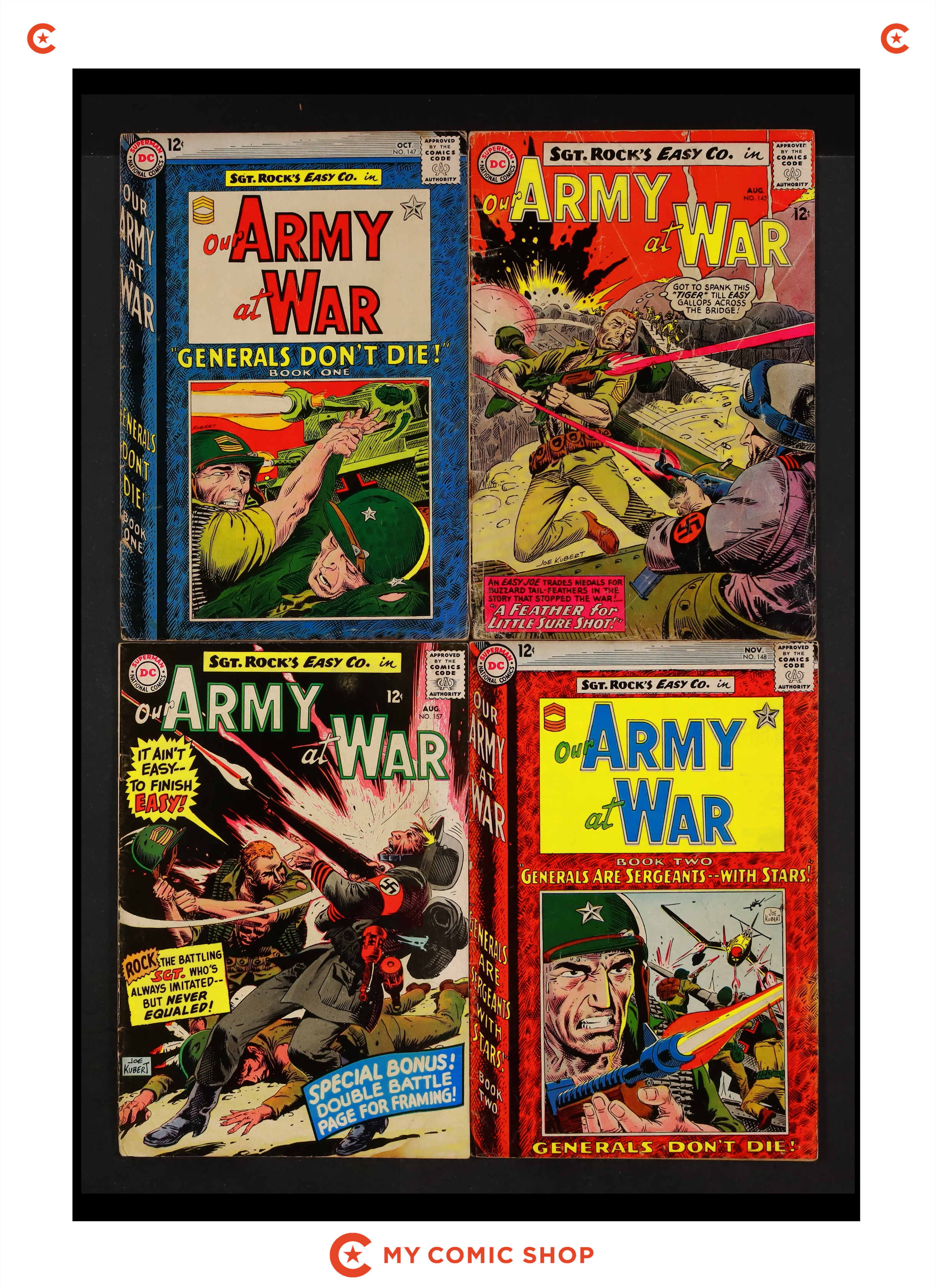 Issues 82, 87-89, and 94 of Our Fighting Forces (1954). Most will grade in the GD range.