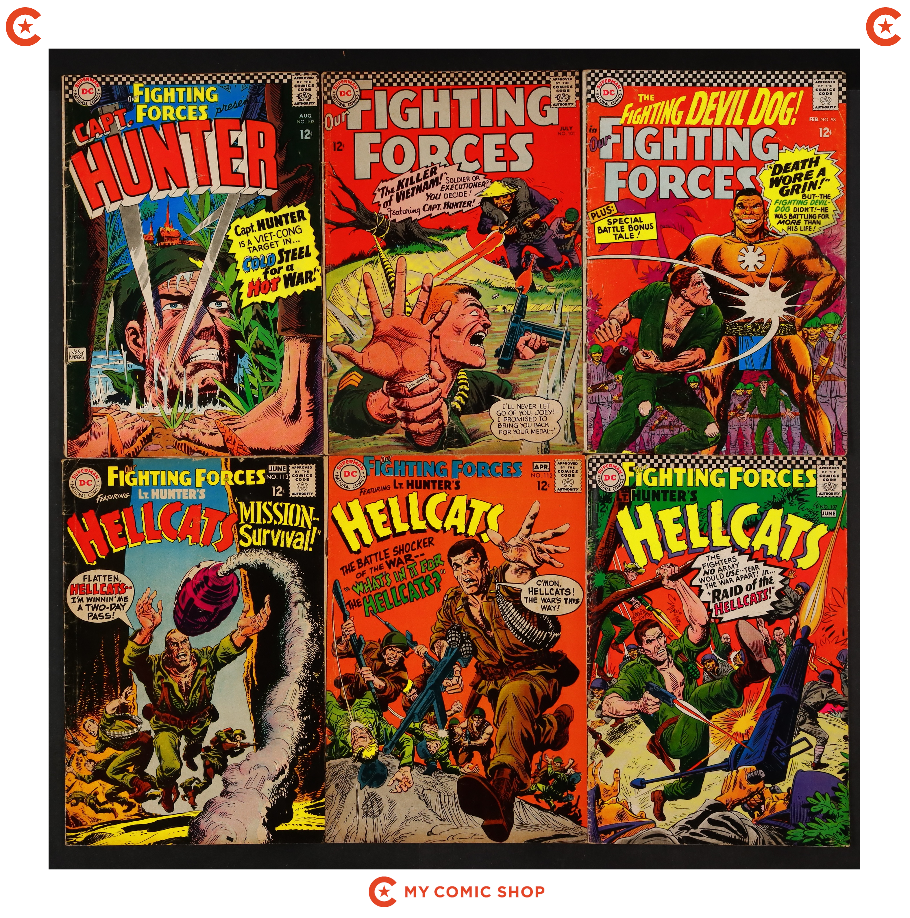 Issues 98, 101, 102, 107, 112, and 113 of Our Fighting Forces (1954). Most will grade in the GD range.