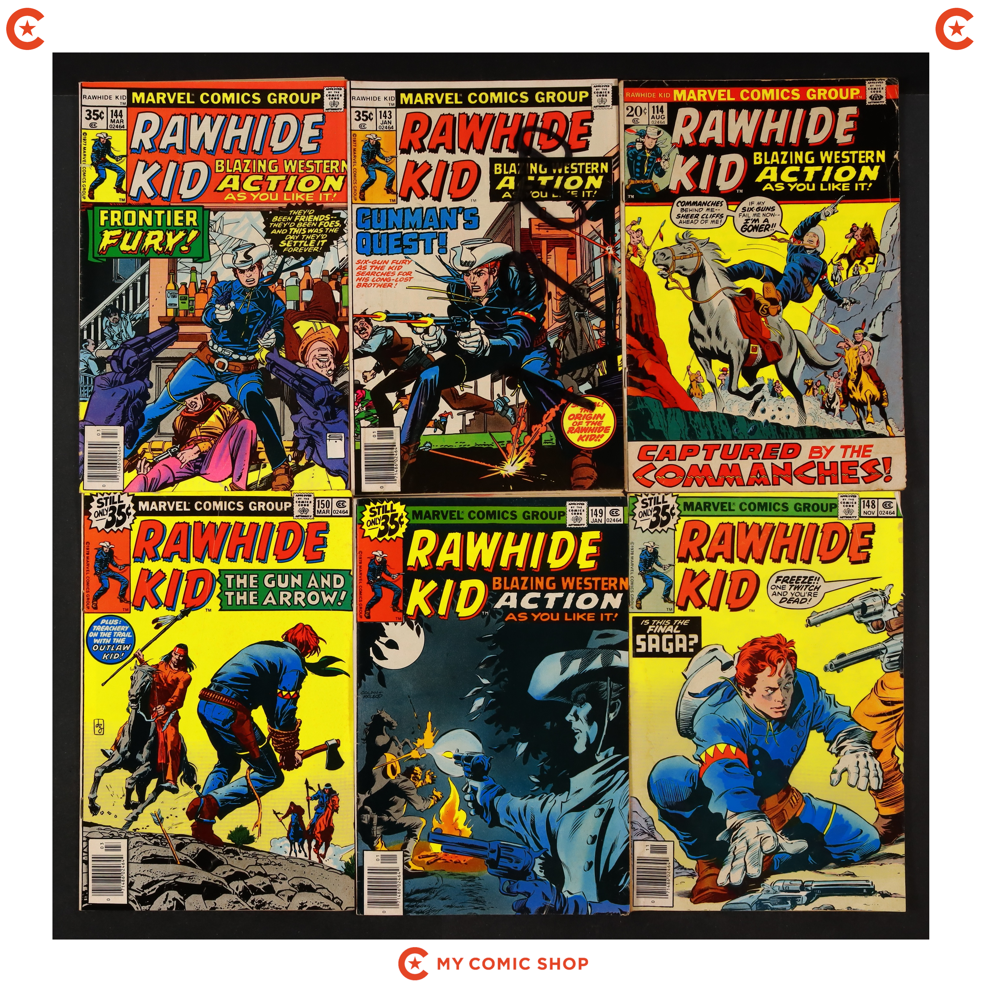 Issues 114, 143, 144, and 148-150 of Rawhide Kid (1955). Most will grade in the VG range with some grading GD.