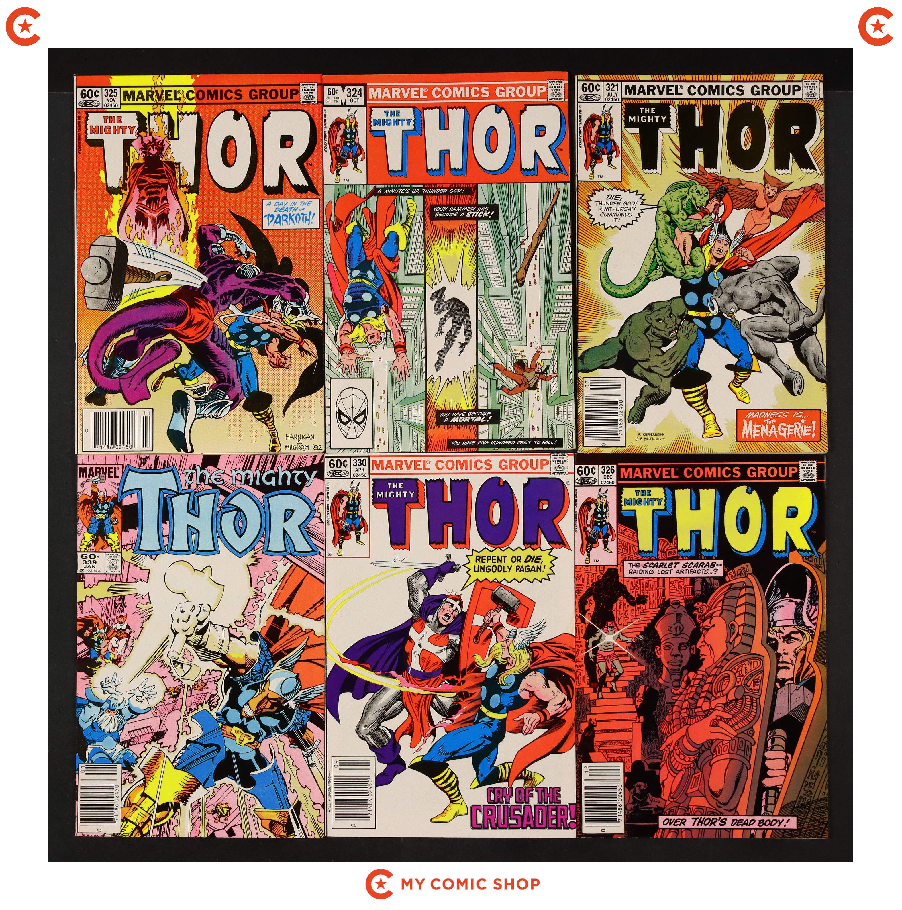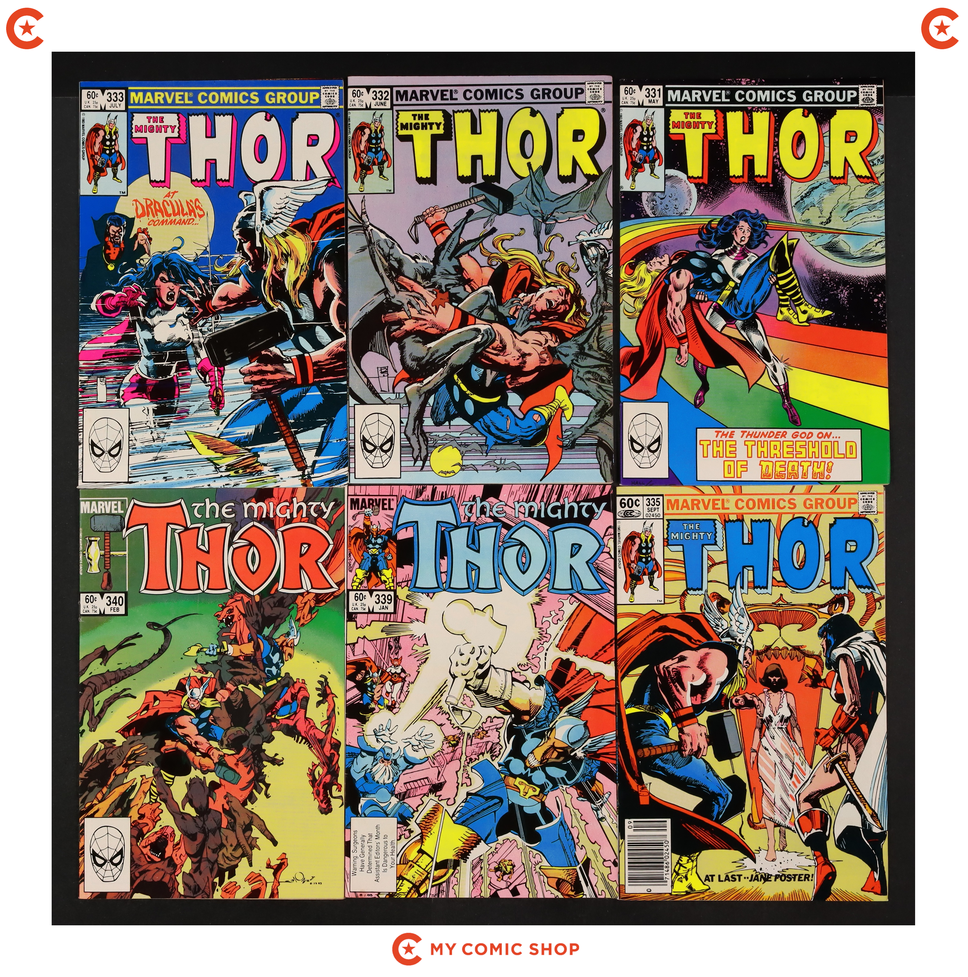 Issues 325-333, 335, 339, and 340 of Thor (1962 Marvel 1st Series Journey Into Mystery). Most will grade in the FN range with a couple grading VF.